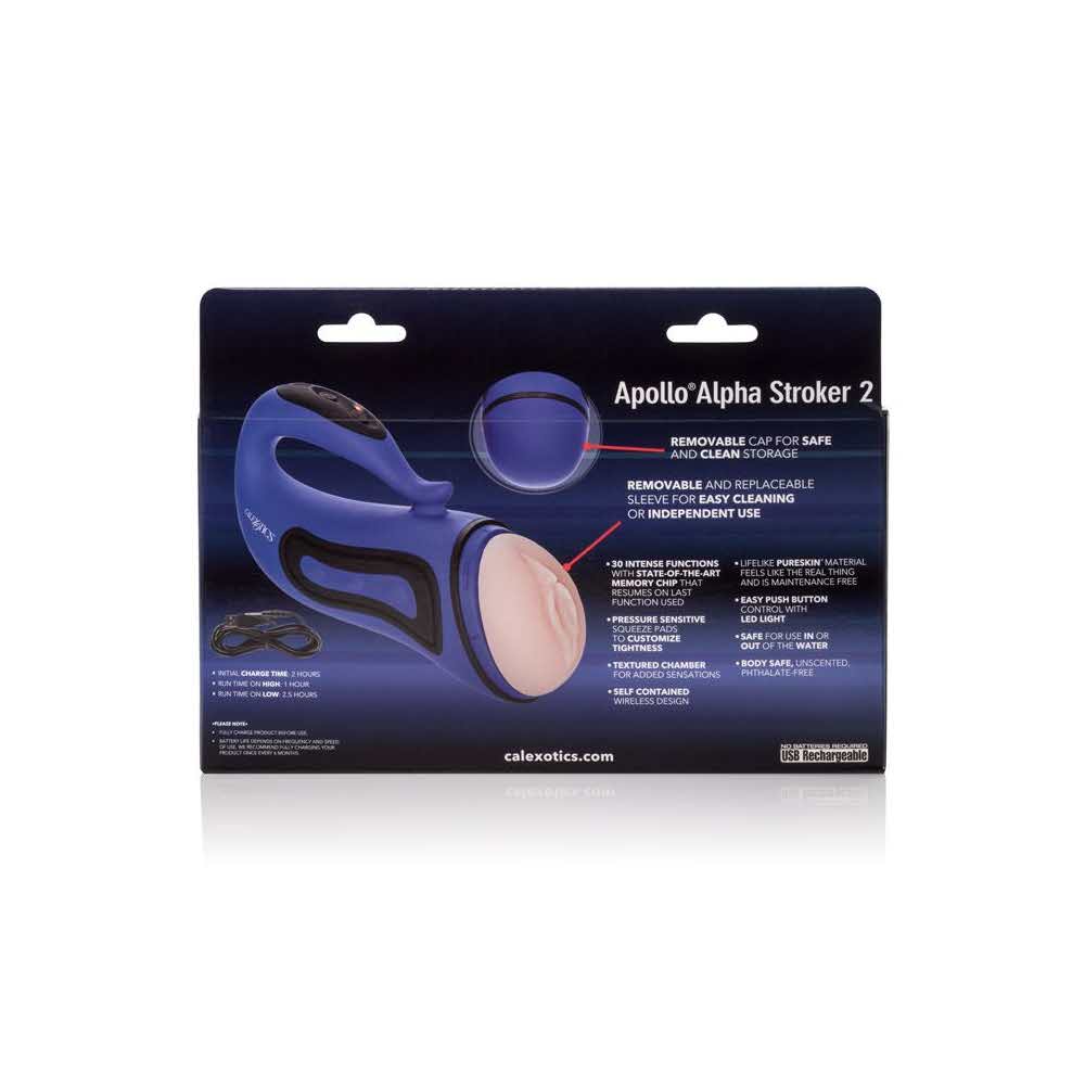 Dzięki 2 dużym przyciskom znajdującym się z boku urządzenia możesz odczuwać przyjemność bardziej ściskając penisa wewnątrz tuby. Apollo Alpha Stroker 1 umieszczony jest w obudowie przypominającej latarkę z niezwykle poręcznym uchwytem, który dopasowuje się do dłoni ułatwiając użytkowanie. Masturbator posiada elastyczną budowę, dzięki temu dopasowuje się do każdego rozmiaru członka. Możesz zabrać zabawkę ze sobą pod prysznic, do wanny i jacuzzi! To produkt najwyższej jakości. Wypełnionym licznymi wypustkami, dzięki którym mężczyzna odczuwa realistyczne doznania stymulując całą długość członka. Rękawy są usuwane i wymienne. Stroker pulsuje 30 funkcjami intensywnej wibracji, pulsacji i eskalacji. Ten stroker posiada zaawansowany chip pamięci, który wznawia pracę przy ostatnio używanej funkcji.