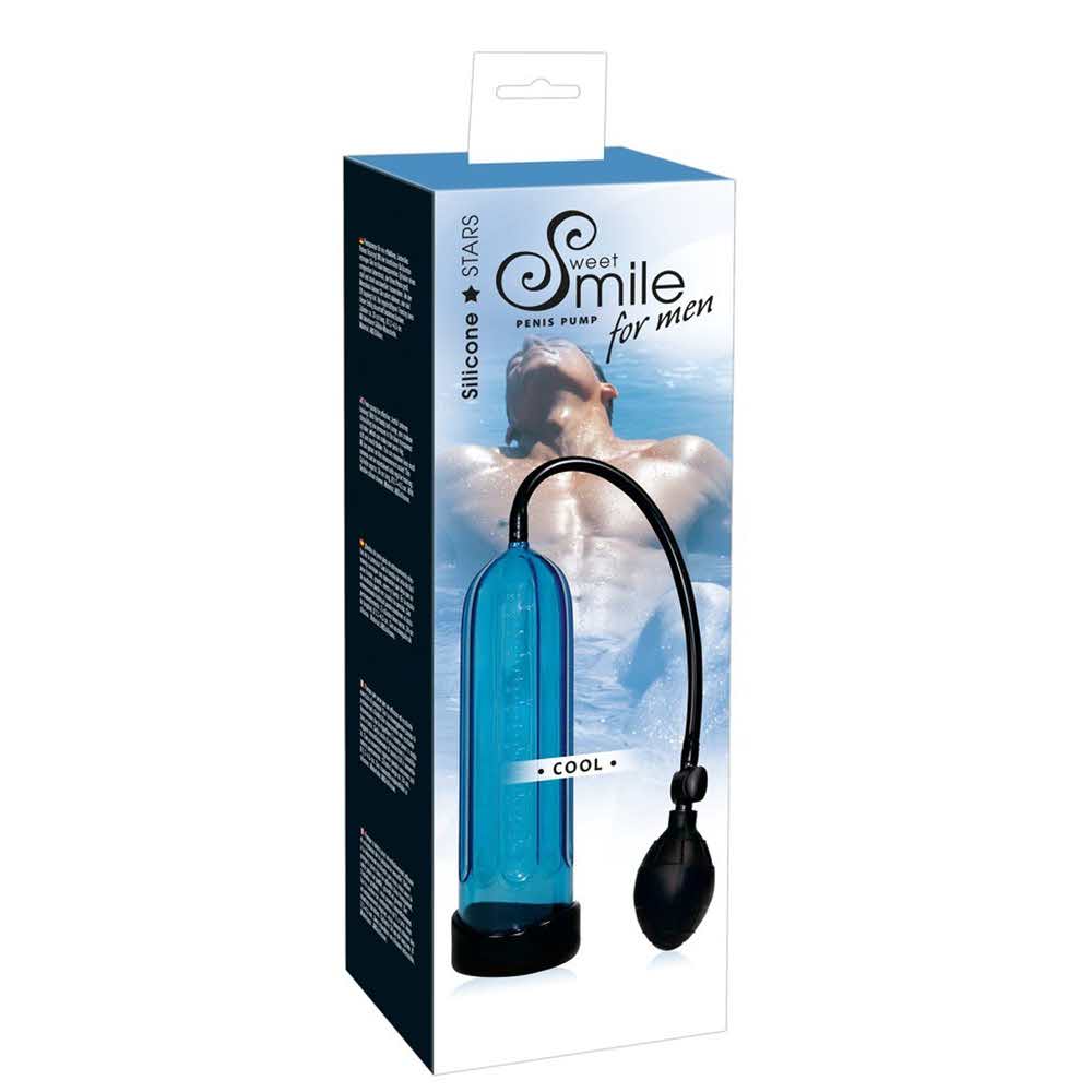 Niebiesko-przezroczysta pompa penisa ze skalą pomiarową do kontrolowania wyników. Wytworzyć niskie ciśnienie ściskając poręczną żarówkę. Cylinder o długości 24 cm, średnicy wewnętrznej 6,4 cm, średnicy zewnętrznej 6,3-7 cm. Z elastyczną tuleją silikonową (Ø 3,1 cm). Materiał: ABS / silikon, bez ftalanów zgodnie z rozporządzeniem UE REACH.