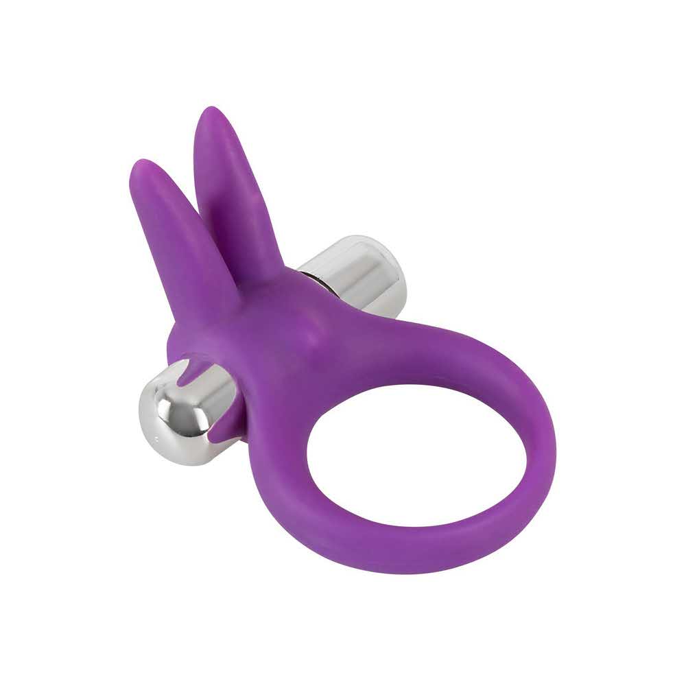 Ten fioletowy pierścień penisa zapewnia nie tylko potężne erekcje dzięki efektowi przekrwienia, ale także przyjemności łechtaczki partnera dzięki 3 cm uszom królika z wyjmowanym wibro-pociskiem! Jeden poziom wibracji za naciśnięciem przycisku. Całkowita długość 6,5 cm, średnica pierścienia 3,5 cm (elastyczna), grubość pierścienia 0,4-0,8 cm. Materiał: silikon, ABS, nie zawiera ftalanów zgodnie z rozporządzeniem UE REACH. Baterie należy zamawiać osobno: 3 x AG13 / LR44.