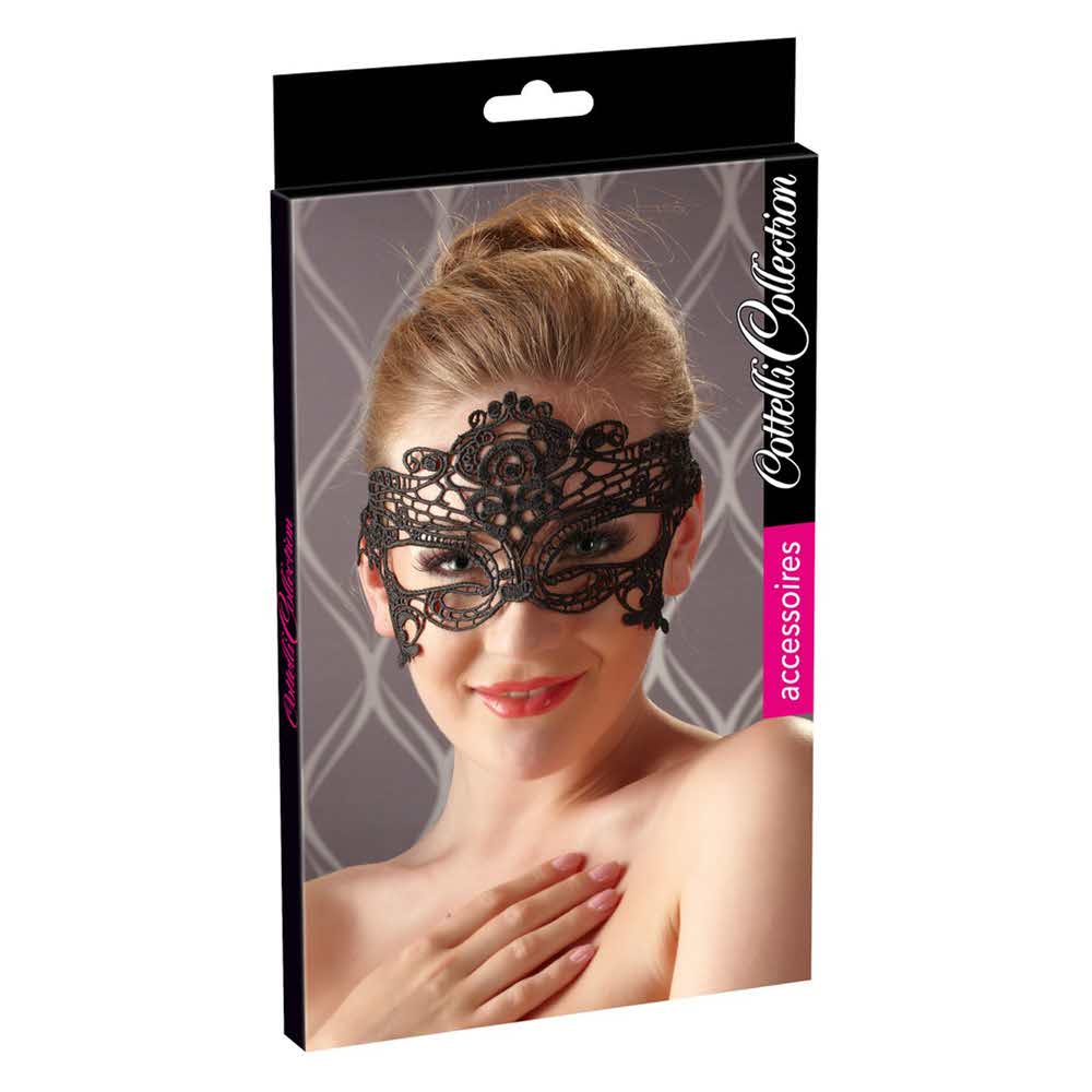 Chwyć uwagę każdego dzięki tej czarnej, haftowanej masce! Twoje oczy są pięknie podkreślone dzięki przestrzeniom w masce. Cienka koronkowa wstążka, która wiąże z tyłu, oznacza, że ​​maska ​​idealnie pasuje. Materiał: 100% poliester.