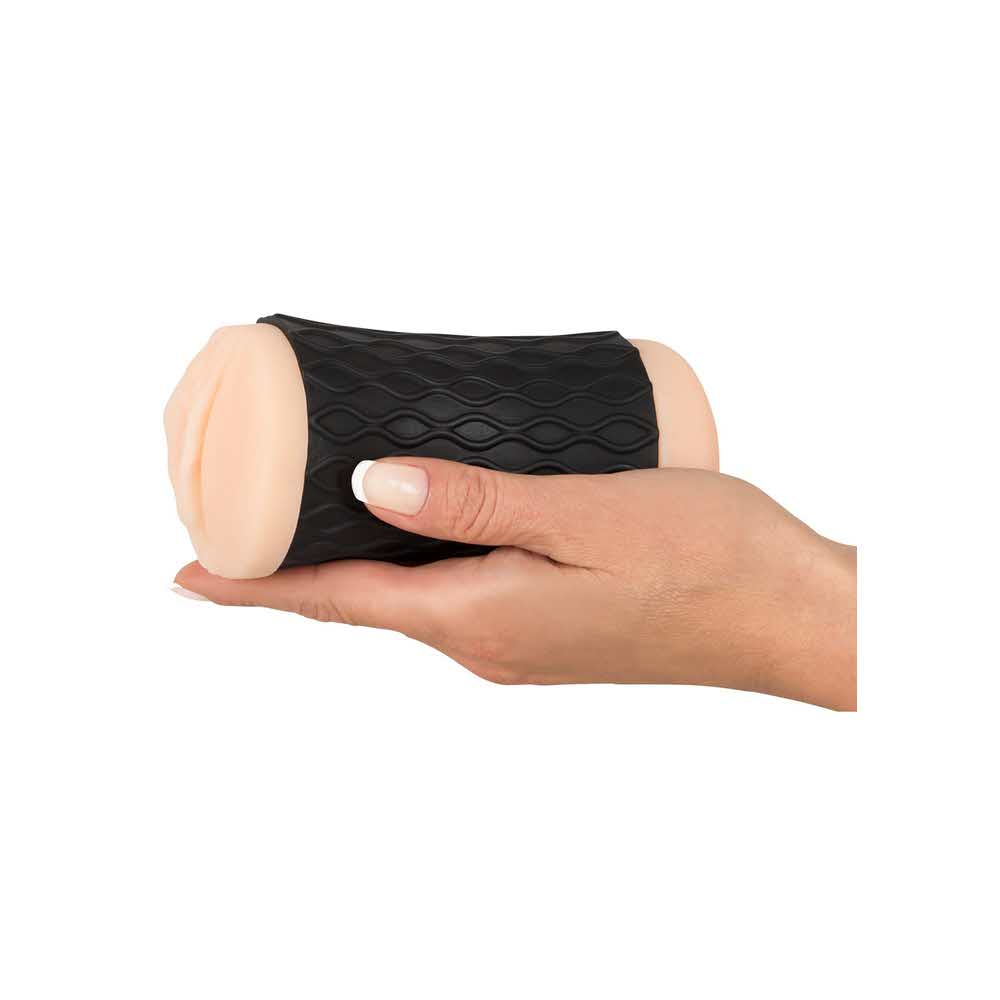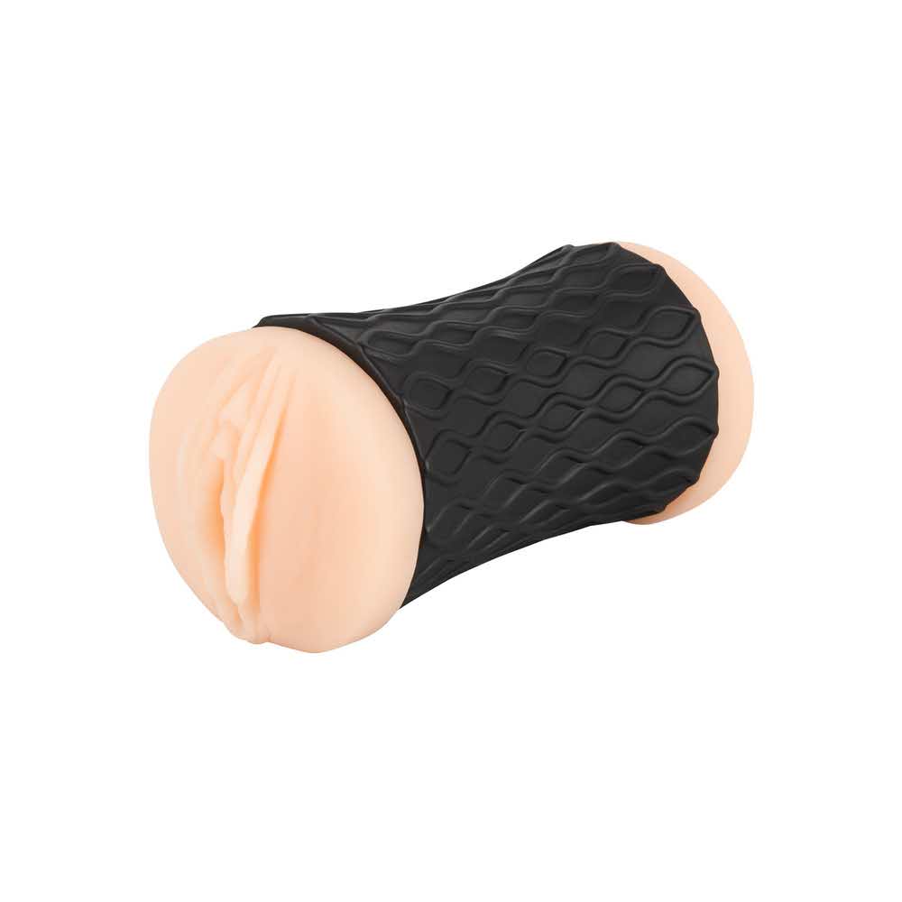 Masturbator w kolorze skóry wykonany z materiału podobnego do skóry. Z dwoma otworami (pochwowym i odbytowym) i czarnym teksturowanym rękawem. Wnętrze tunelu przyjemności po stronie dopochwowej jest wykropkowane, a wnętrze tunelu przyjemności po stronie odbytu jest rowkowane.