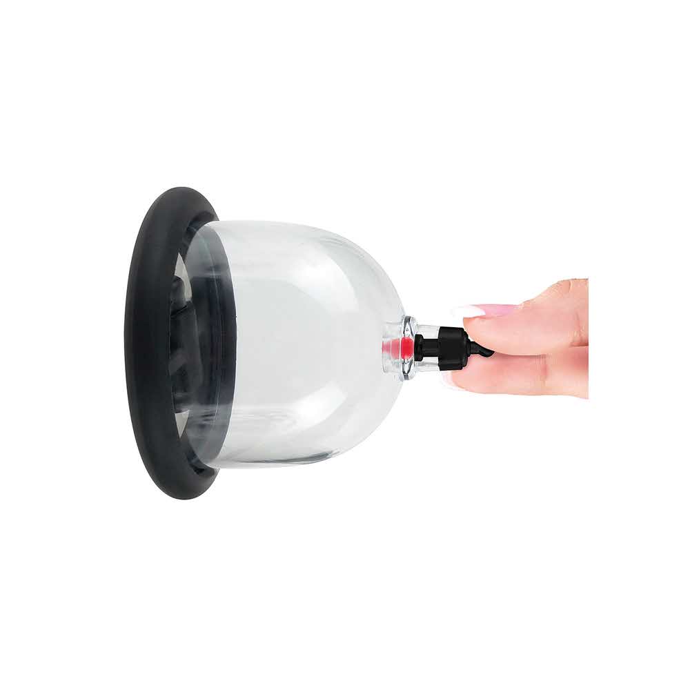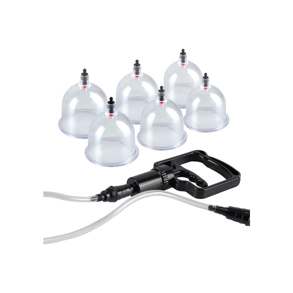 Add the sensation of suction to your fetish play with this Beginner’s 6pc. Cupping Set. Based on ancient Chinese cupping therapy, these modern day plastic suction cups create a powerful vacuum that stimulates your hot spots and delivers amazing sensations. The suction action gently increases blood flow and excites your sensitive nerve endings, creating a one-of-a-kind feeling unlike anything you’ve experienced. The cups can be used virtually anywhere on your body – but they really feel great on the nipples, clit, buttocks, or any other erogenous zone. Each cup has its own built-in release that instantly relieves pressure when you pull the black pin. To use, lightly lubricate the skin first, then attach the flexible hose to the valve on the top of each cup. Pull the EZ-grip trigger and watch your partner’s skin rise with suction. After you’ve reached your desired tension, remove the hose from the cup and the suction will remain constant until you pull the pin.