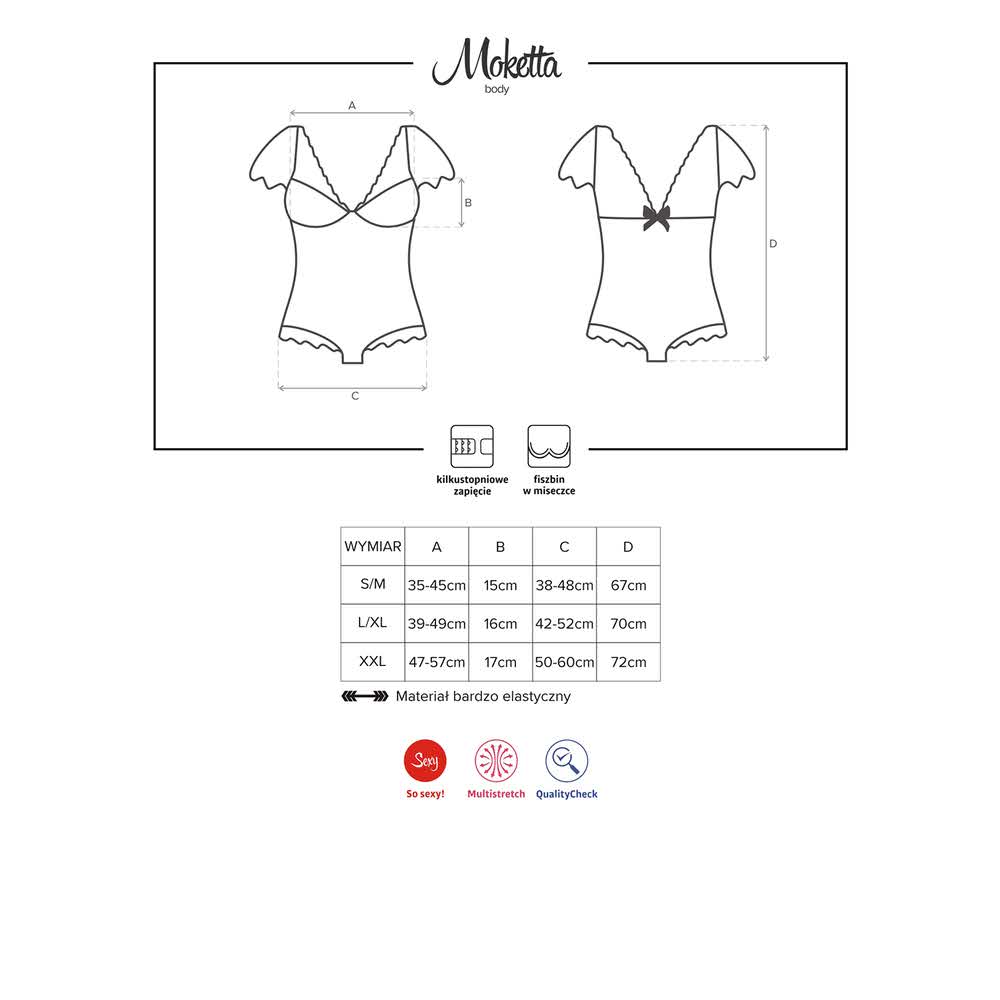 Kobiecy fason, wspaniale ozdobione ciało i seksownie wyeksponowane nogi. Oto Twoja miłosna strategia o nazwie Moketta! Jeśli tylko chcesz, niebawem możesz zrealizować każdy jej gorący aspekt. I to jak! Podkreśl swój naturalny wdzięk strojem prawdziwej kusicielki, poczuj się wyjątkowo i rozpocznij ekscytującą noc!