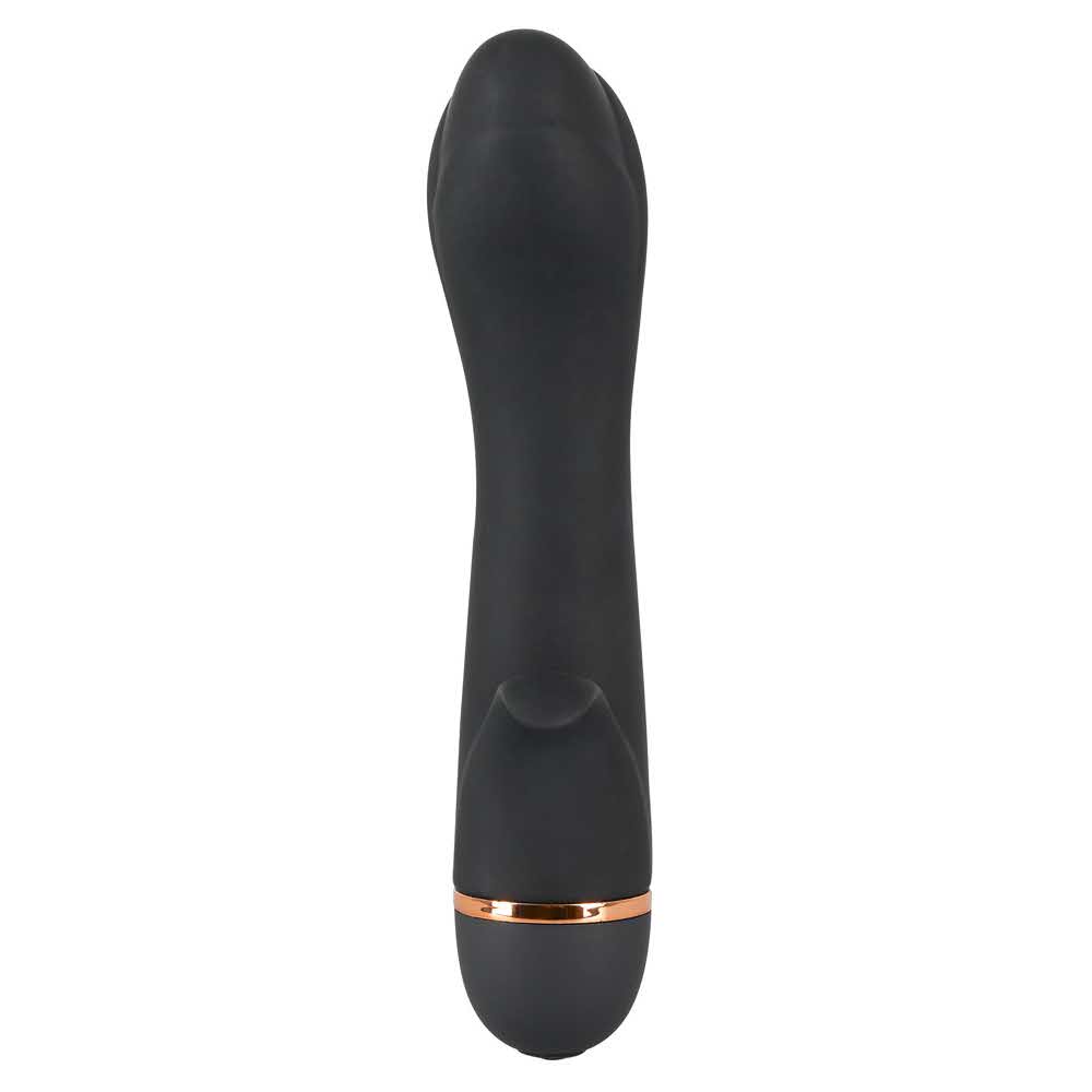 Elastyczny, czarny wibrator w kształcie królika z zaokrągloną głowicą. Stymulator łechtaczki ma kształt małego liścia. 20 trybów wibracji za naciśnięciem przycisku. Całkowita długość 16,4 cm, głębokość wsuwania 10 cm, Ø 2,4-3,4 cm. Materiał: silikon, ABS z powłoką poliuretanową. Bez ftalanów zgodnie z Rozporządzeniem UE REACH. Baterię należy zamawiać osobno: 1 x AA / Mignon.
