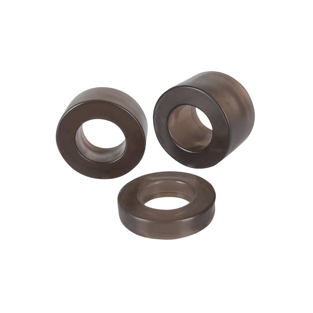 Zestaw trzech pierścieni. Najmniejszy pierścień umieszcza się wokół moszny na szczycie jąder. Jądra zostają zepchnięte, a moszna zostaje rozciągnięta. Szerokość pierścienia: 1 cm, 2 cm i 3 cm. Wszystkie pierścienie mają średnicę wewnętrzną 2,5 cm (elastyczny). Grubość 1 cm.