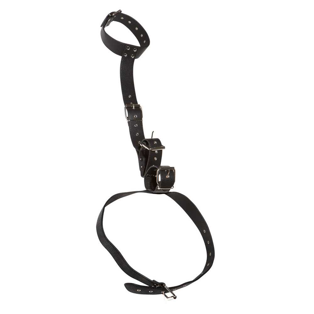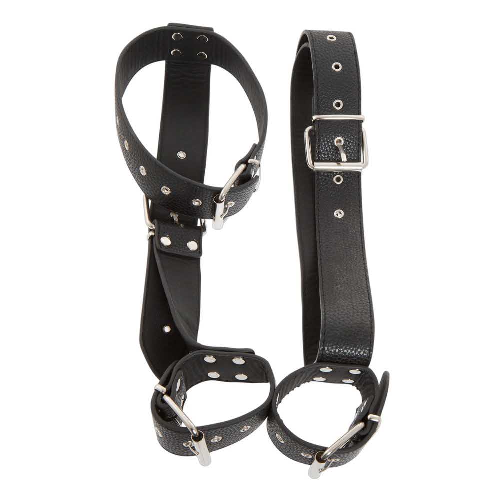 Jego mocna konstrukcja oznacza, że ktoś może być bezpiecznie związany. Wszystkie paski wykonane są z czarnej imitacji skóry i można je dopasować do siebie (zapięcia klamrowe z wieloma zapinkami) Poliuretan bez ftalanów zgodnie z Rozporządzeniem UE REACH.