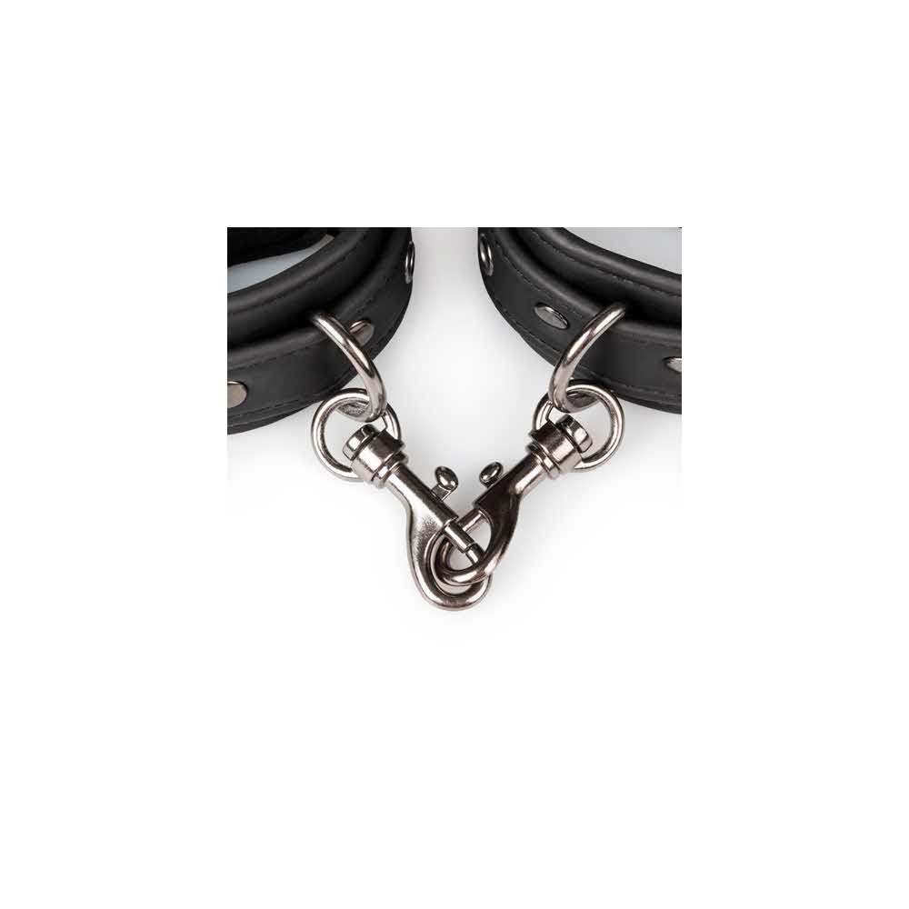 Zwiąż ręce swojego podwładnego lub przywiąż je do łóżka, aby uzyskać ekscytujące doświadczenie niewoli! Mankiety można regulować w zakresie od 11 do 28 cm, dzięki czemu zawsze idealnie pasują. Mankiety są przymocowane do siebie metalowym łańcuchem, ale klipsy umożliwiają również ich oddzielenie i używanie w połączeniu z innymi zabawkami. Mankiety wykonane są ze sztucznej skóry, pokrytej miękką pianką, aksamitne w dotyku, dzięki czemu są wygodne w noszeniu.