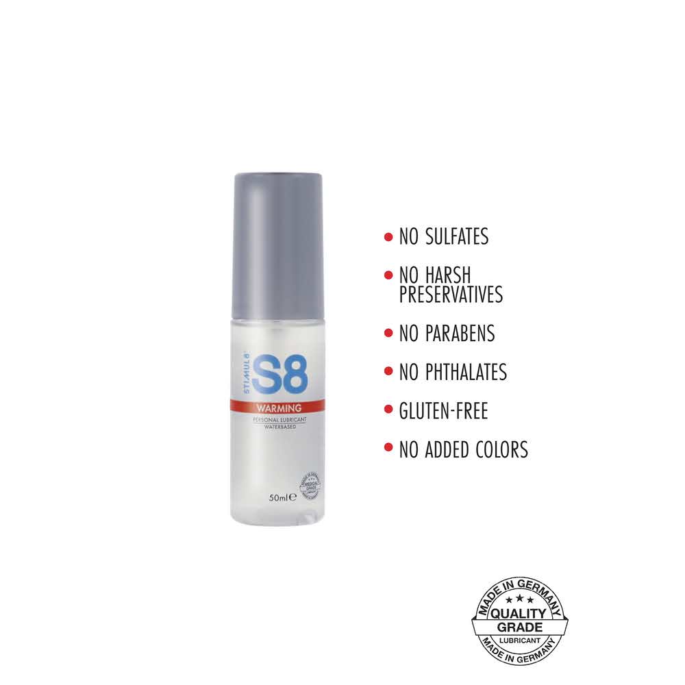 The premium Waterbase Warming Lubricant by S8 is a perfect match with consumers looking for a body-safe, quality lube to enhance intimacy and smoothen out their intimate adventures. This fantastic, long-lasting formula by S8 is completely paraben-free, phthalate-free, gluten-free, sulfate-free, plus contains no added colors or harsh preservatives for an irresistible ‘natural’ appeal. When applied, the S8 Waterbase Warming Lubricant has a gentle warming effect on the skin, adding a pleasurable touch of hot passion right where you want it!