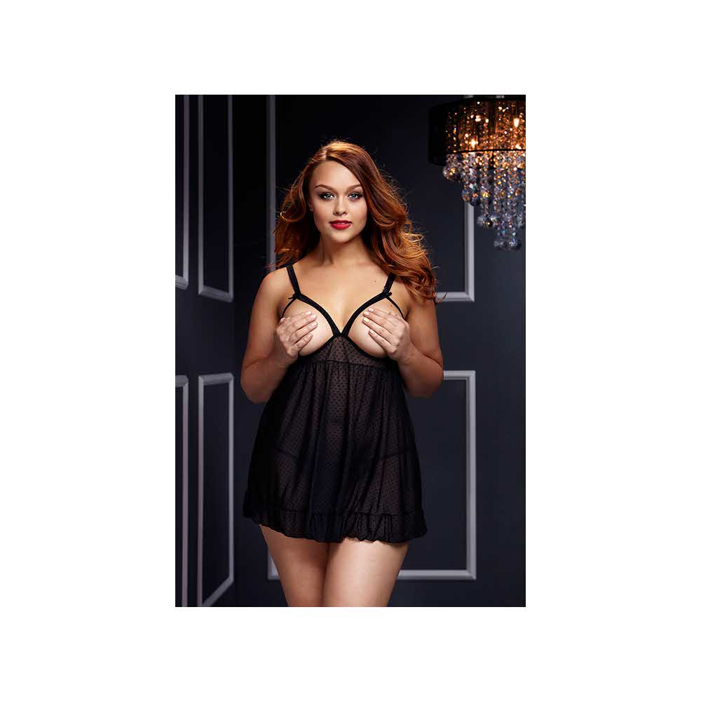 Koszulka Baci Black Sheer Babydoll Open Cup Bra Panty Queen Size