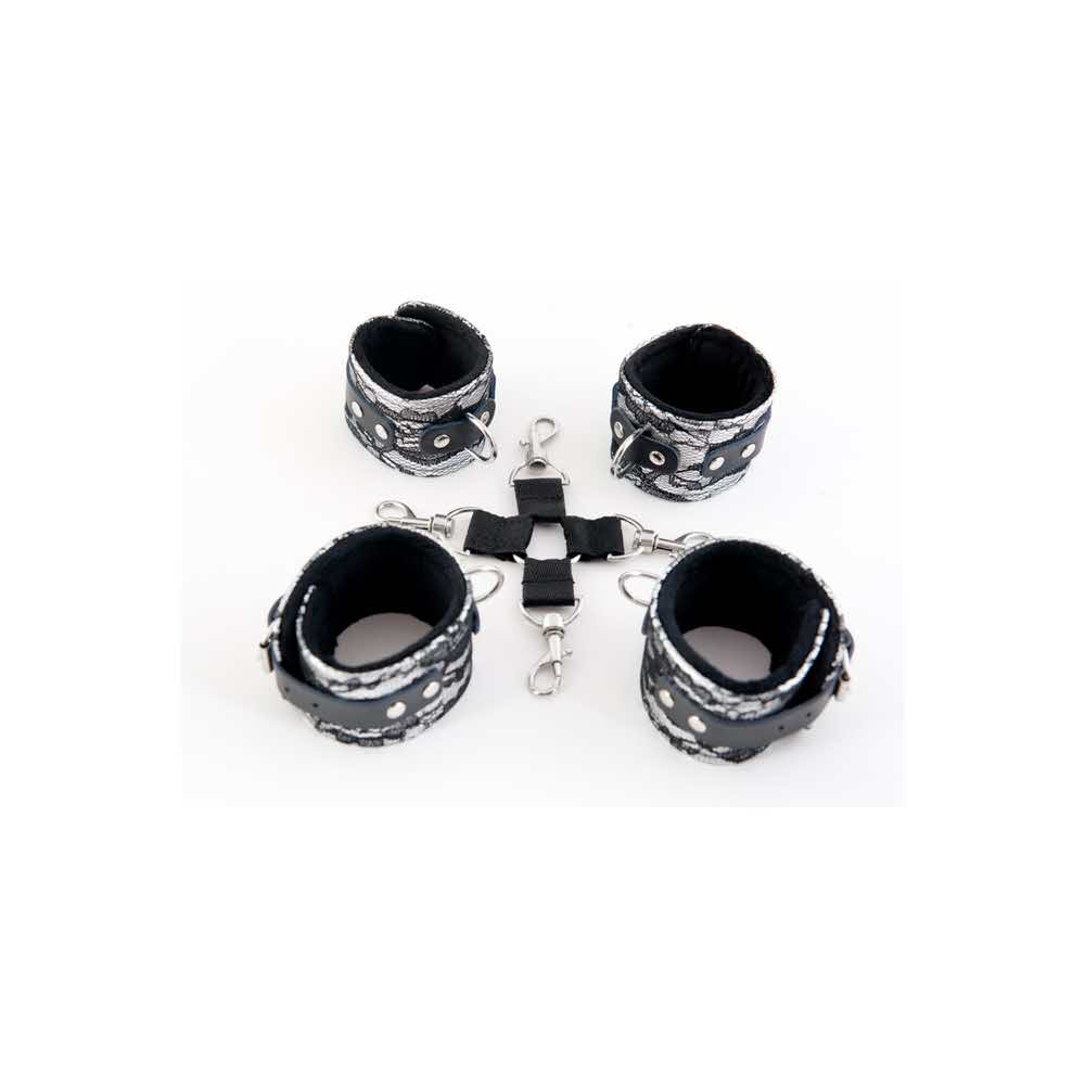 Wiązania MARCUS 714001 Hog tie cuffs set with metal clips tracery silver bdsm Valentine day