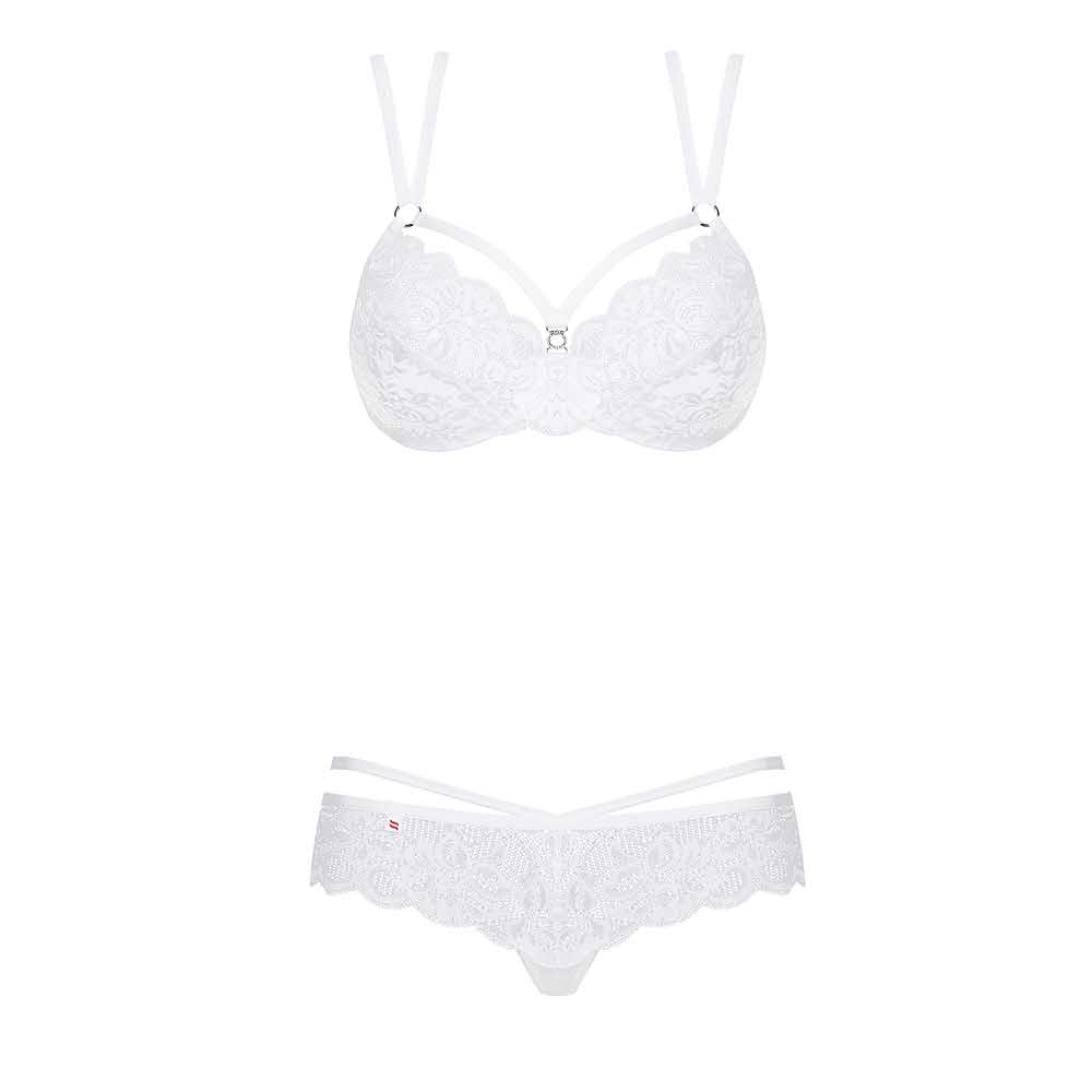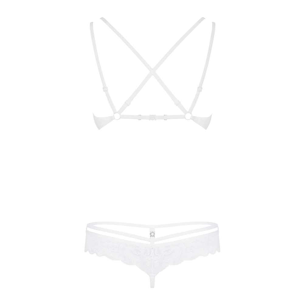 Spodobał Ci się ten model? Świetny wybór! Na żywo wygląda jeszcze cudowniej. Nieziemsko piękna biel, kusząca koronka i seksowne paski – zabierz do siebie ten wyjątkowy zestaw. A gdy już będzie Twój, przygotuj się na mnóstwo przyjemnych chwil z Twoim mężczyzną!