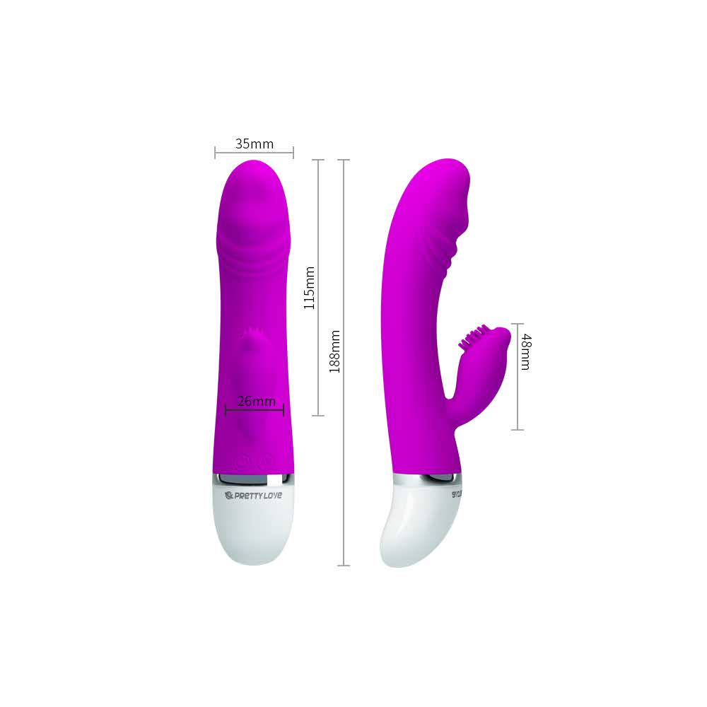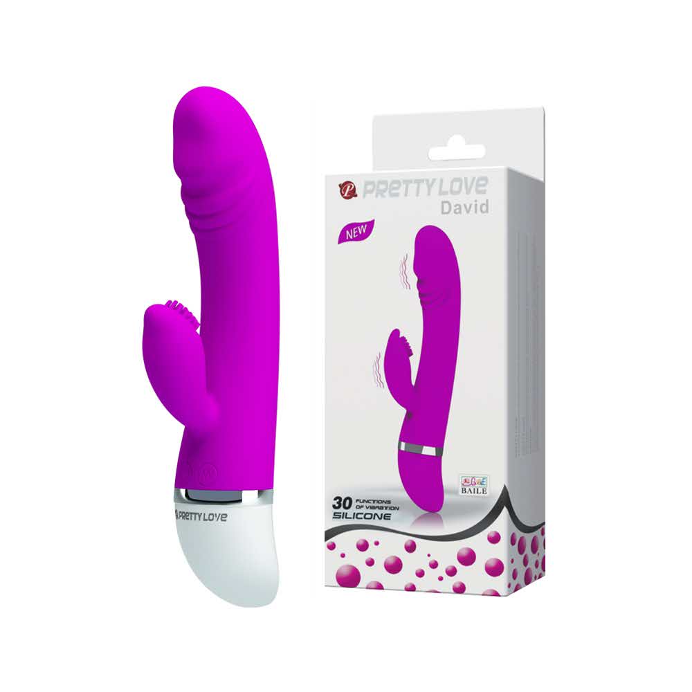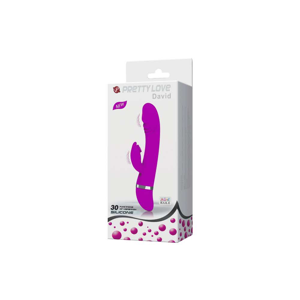 Pretty Love David to 100% silikonowy wibrator z króliczkiem – jego podwójna konstrukcja pozwala na wyzwolenie nieziemskiej ekstazy. Dłuższa końcówka odzwierciedla męską anatomię – specjalnie zakrzywiona końcówka dodatkowo pozwala na stymulację punktu G, natomiast krótsza końcówka jest umieszczona w odpowiednim punkcie, by obejmować łechtaczkę. Końcówka ta wykończona jest miękkimi wypustkami tworzącymi szczoteczkę, która wspaniale masuje okolice łechtaczki.