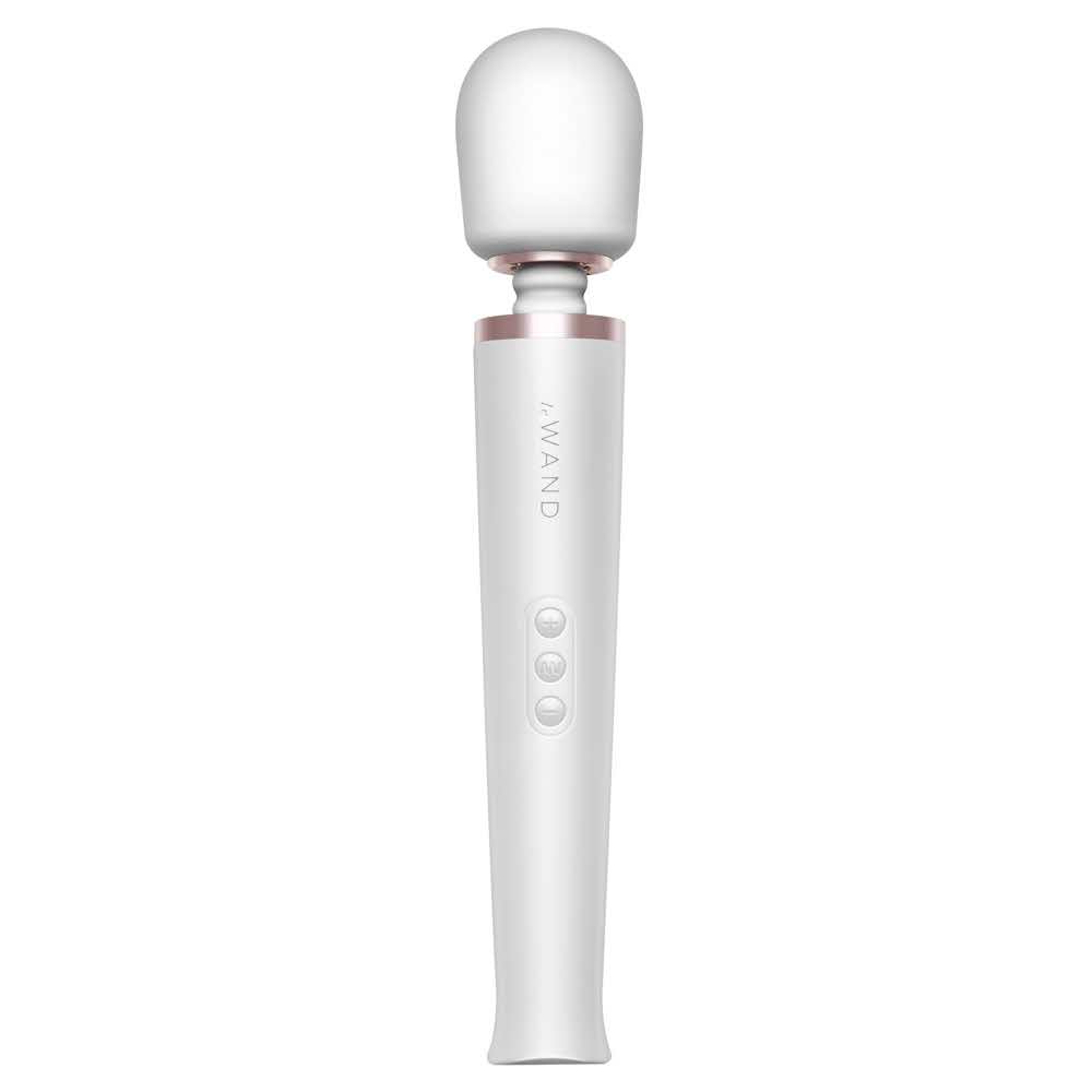 Winner of Cosmopolitan’s Sexcellence Award of “Most Powerful Sex Toy,” Le Wand Rechargeable Vibrating Massager is guaranteed to deliver intense and sensual pleasure. The luxurious massager has 10 distinctive, rumbly vibration speeds and 20 vibration patterns. Le Wand’s sleek design provides focused vibration in the head of the wand. Powerful, penetrating pleasure is granted in the convenience and versatility of a rechargeable wand. Le Wand Rechargeable Vibrating Massager is a complete set that features a body-safe silicone head, flexible neck, convenient travel case, and beautifully giftable packaging.Universal changeable adapters for US, UK, EU, & AUSoft, seamless silicone & ABS plastic10 Vibration speeds & 20 vibration patternsSoft silicone head & flexible neckSplash-proofRechargeable batteryIncludes convenient travel casePremium PackagingMaterials: body-safe silicone & ABSSize: 34,0 (H) x 6,2 (D) cmDiameter: 6,21 cm / 2.45 inchNeck diameter: 5,0 cm / 1.97 inchCircumference: 19,5 cm / 7.69 inchWeight: 1.49 lbs / 674 gBattery: 2200 mAhCharging time: 3 hoursUse Time: Up to 3 hoursMax noise level: < 68 dBInterface: 3 button controlIntensity levels: 10Vibration modes: 20Is Le Wand Rechargeable Vibrating Massager waterproof?No, it is neither waterproof or splashproof. Do not use it in the shower or a bath.How should I clean Le Wand Rechargeable Vibrating Massager?Use a damp cloth and mild antibacterial soap to wipe the toy down. Make sure the cloth removes all soap residue before you allow the toy to dry. You can also use a sex-toy cleaner directly on the area of use, and finish with a damp cloth.How should I store my Le Wand Rechargeable Vibrating Massager?After cleaning, allow Le Wand Rechargeable Vibrating Massager to air dry. Then, put it into the storage pouch included with the toy and tuck it in your drawer/box of treasures.Is Le Wand Rechargeable Vibrating Massager intended for external or internal use?Le Wand Rechargeable Vibrating Massager is designed to pro