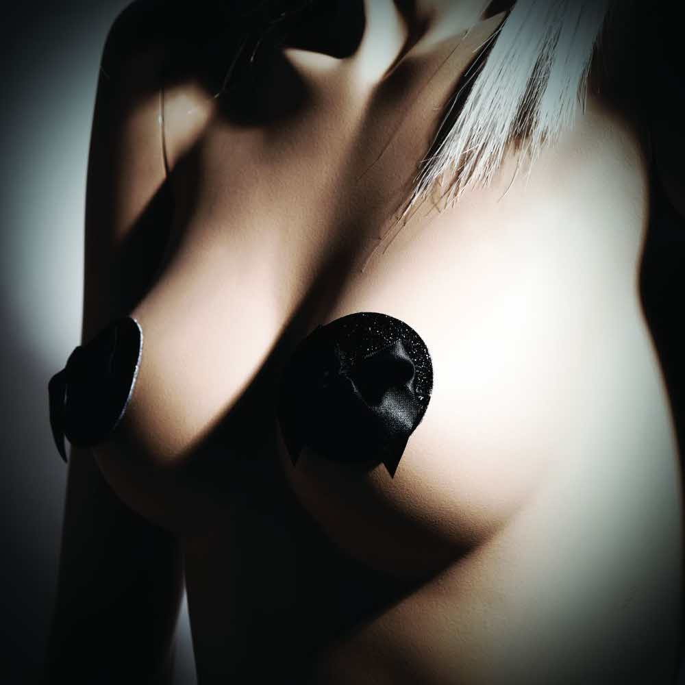 Skórzane nakładki na sutki, samoprzylepne.Przypominające używane w burlesce w 19 wieku, pełne wdzięku i zmysłowości.