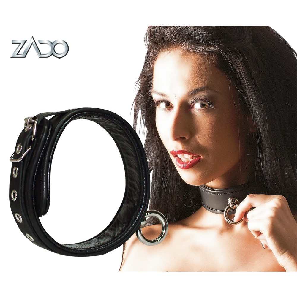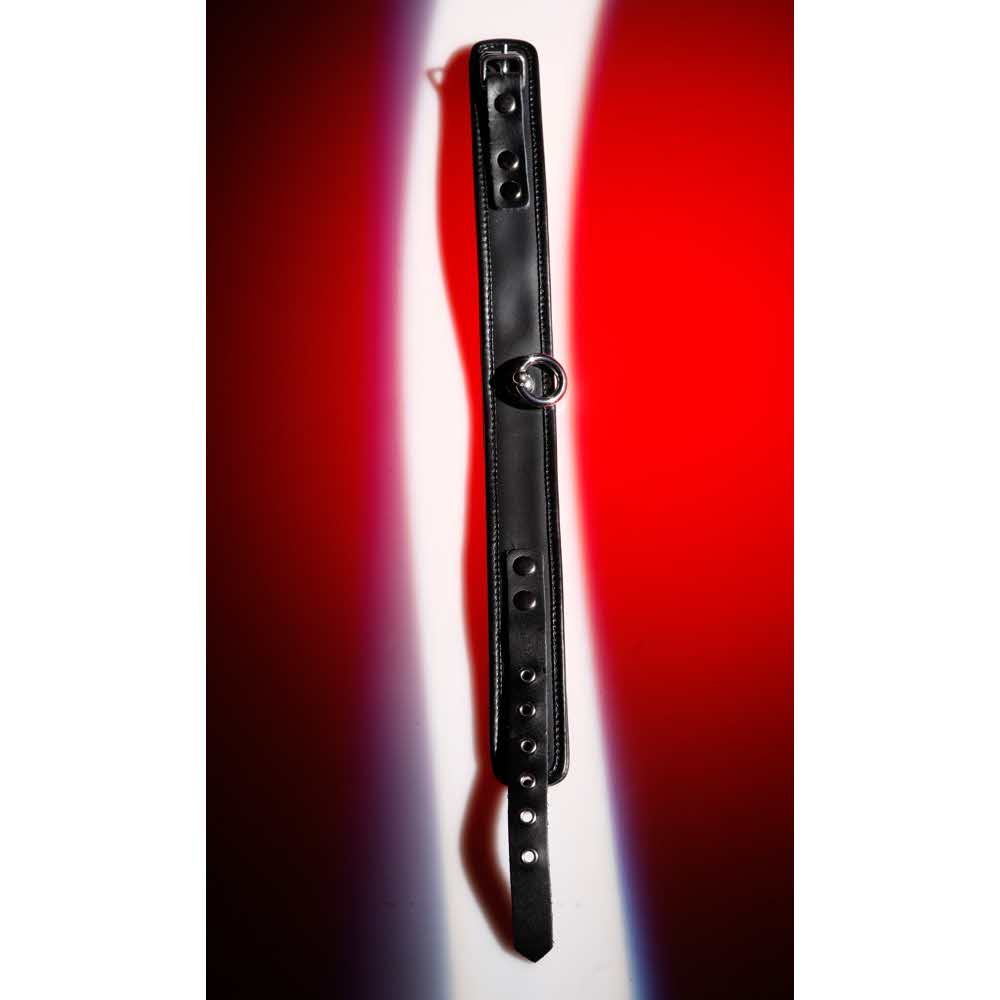 Dzikie i seksowne! Szeroki na 4 cm, wysokiej jakości, obrobiony mankiet na szyję z ozdobnym pierścieniem na małym drążku. Długość 45 cm, z zapięciem na klamrę regulowanym od 32-50 cm. Skóra (garbowana bezchromowo), metal. Zawiera nietekstylne składniki pochodzenia zwierzęcego.