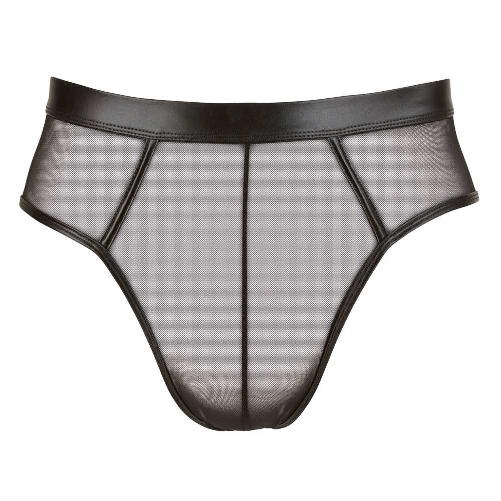 Te majtki kuszą do erotycznych walk! Szalenie zachęcające są te slipy bez dna dla mężczyzny, który lubi prezentować swoje atuty… Elastyczne połączenie materiału wetlook z lekko prześwitującym powernetem przyciąga wzrok! 90% poliamid, 10% spandex.