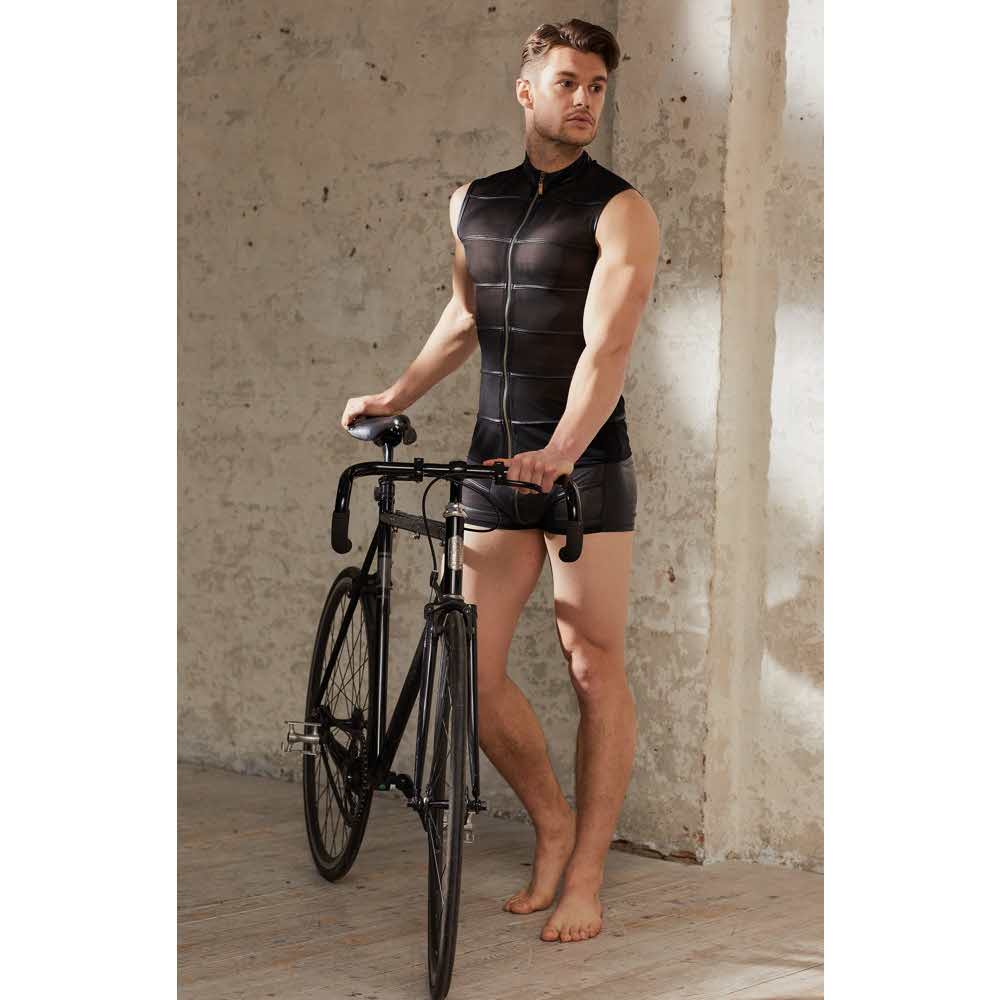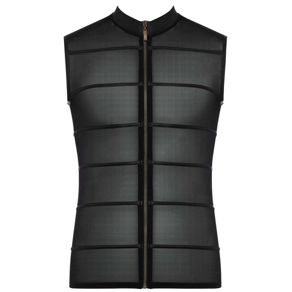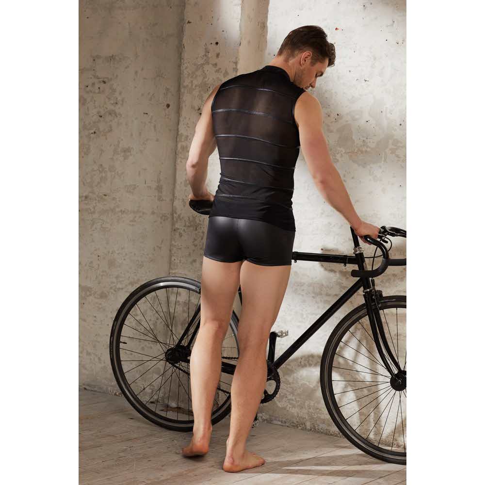 Człowiek w czerni! Idealna do prężenia muskułów, bo w tej koszulce bez rękawów z czarnego powernetu wypadają one szczególnie dobrze. Przezroczysty materiał jest poprzecinany matowymi czarnymi paskami, które nadają koszulce ekscytujący wygląd. Elastyczna koszula z wysokim dekoltem i małą stójką, którą można rozpiąć w kilka sekund dzięki zamkowi błyskawicznemu na całej długości z przodu…. 90% poliamid, 10% elastan wkładki 90% poliester, 10% elastan, powłoka poliuretanowa.