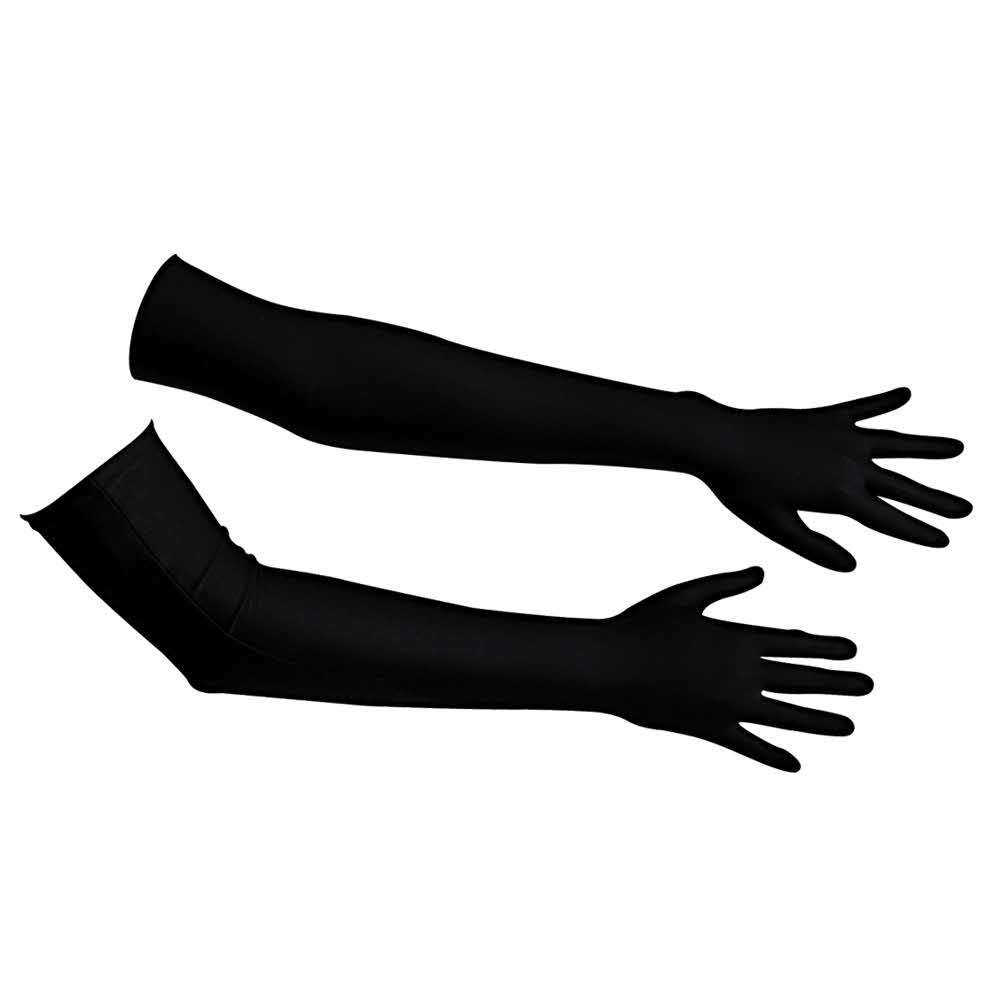 Dla uwodzicielskich kobiet! Długie, czarne kobiece rękawiczki aż po łokieć. Wykonane z elastycznej satyny dla optymalnego dopasowania i maksymalnego komfortu noszenia. Odpowiedni dla rozmiaru S-L. 90% poliamid, 10% elastan.