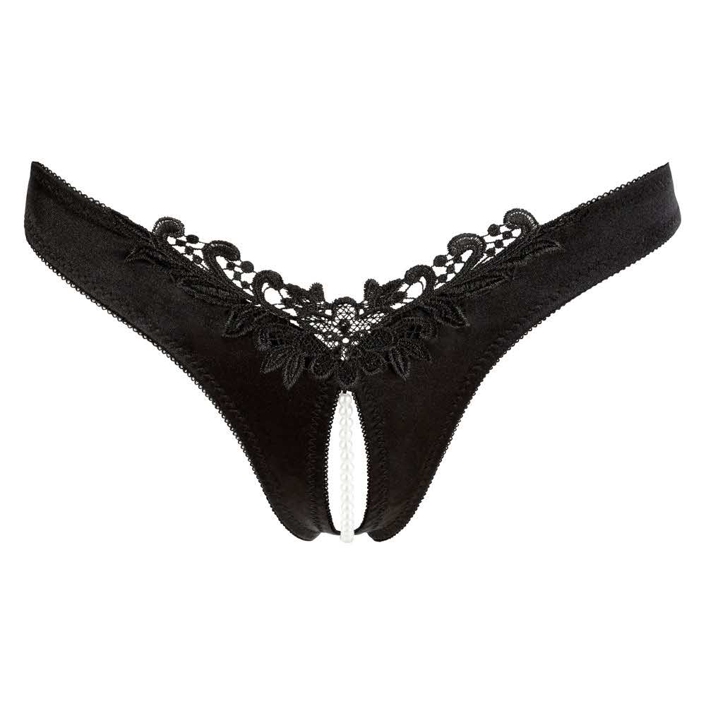 Uwodzi i stymuluje w tym samym czasie! Jedwabista halka ouvert z stymulującym naszyjnikiem z pereł przez krocze. Wykonana z satyny z misternym haftem z przodu. 90% poliamid, 10% spandex.