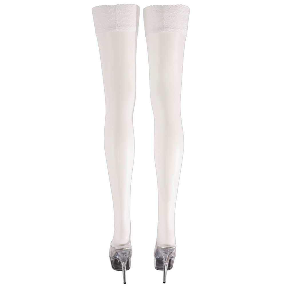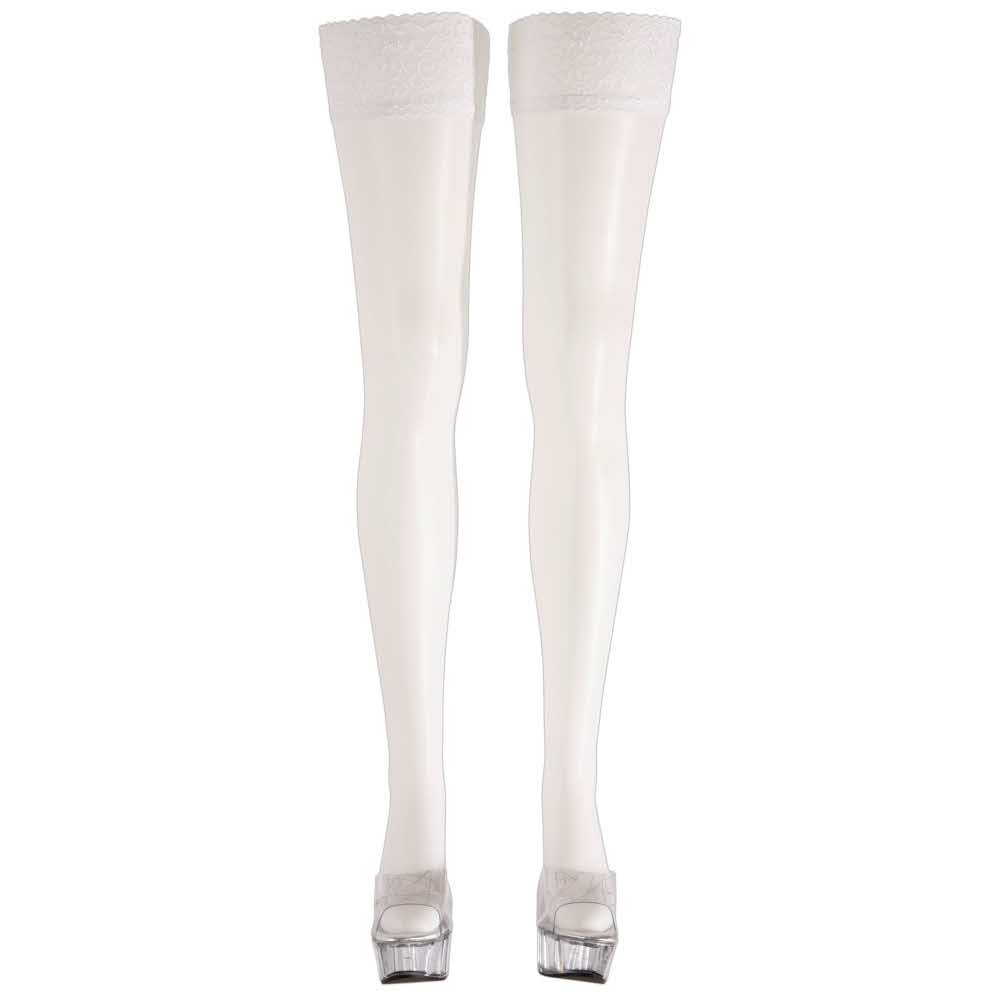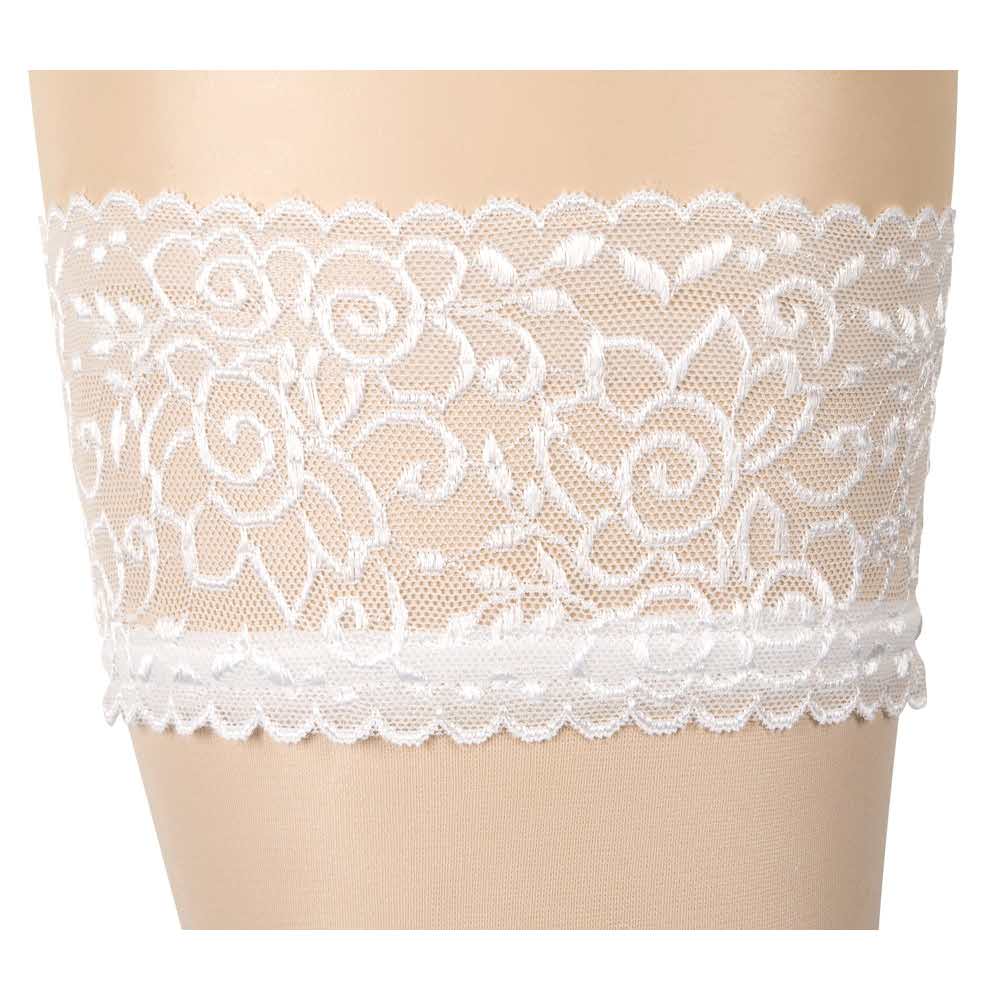 Czasami musi być biały! Pończochy do pończoch z koronkową obwódką o szerokości 7 cm. Cudowna biel dla dużych występów. 17 den. Certyfikat Oekotex. 90% poliamid, 10% elastan. Zastrzega się możliwość zmiany końcówki.