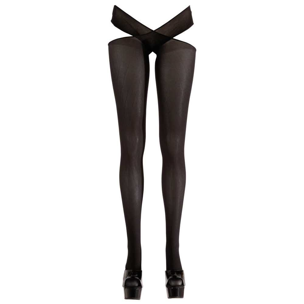 Black stockings with a waist strap that is worn in a criss-cross style. Crotchless.