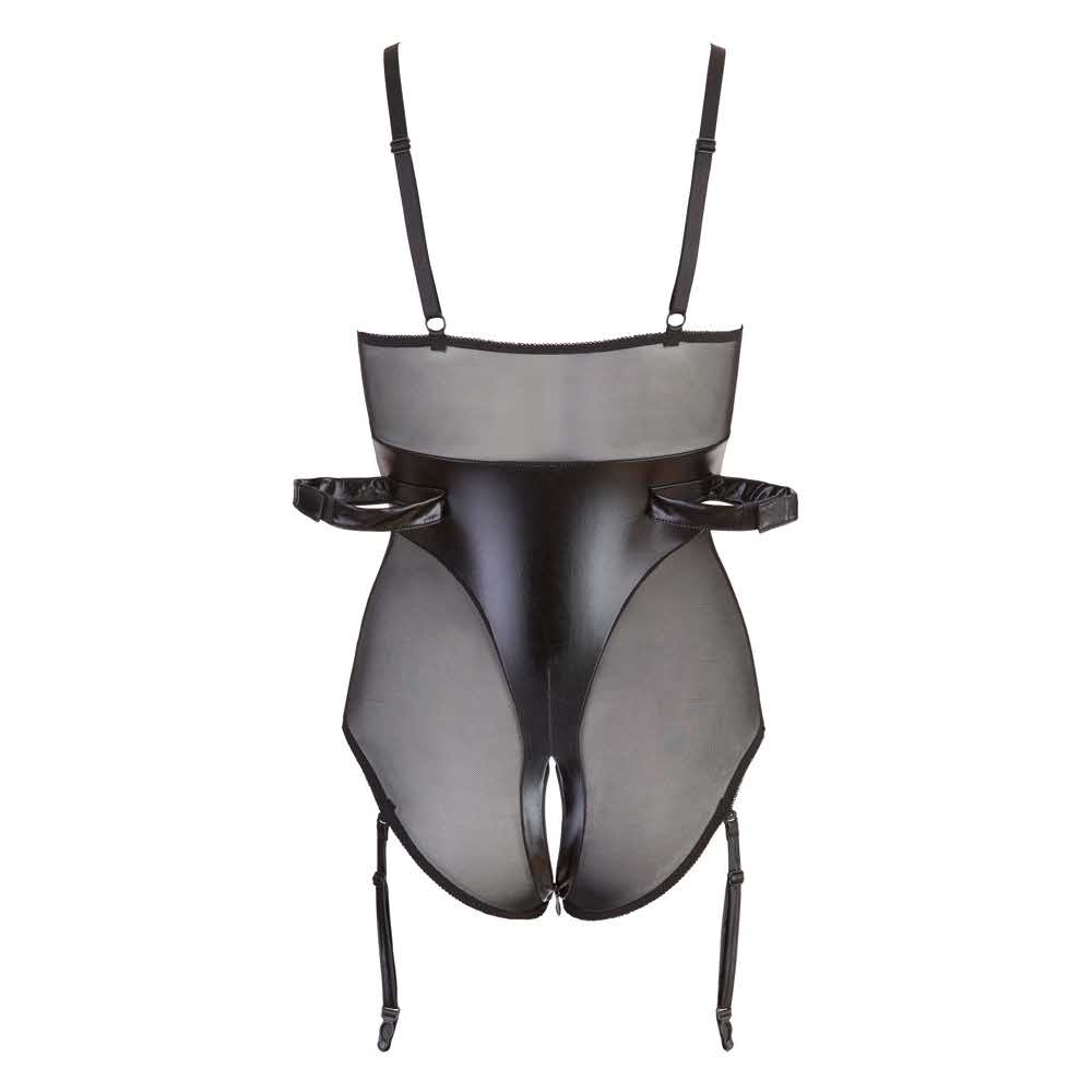 Błyszczący wet look i transparentny powernet w wyrafinowanym połączeniu! Czarne body od Cottelli BONDAGE z kółeczkiem pośrodku, małymi zamkami przy miseczkach i uroczym dwukierunkowym zamkiem w kroku może zrobić o wiele więcej niż tylko seksownie się ubrać! Ponieważ z tyłu jednoczęściowego stroju erotycznego zaskakują 2 pętelki, którymi można przymocować ramiona do lubieżnych zabaw w bondage. Ramiączka regulowane, szelki odpinane i regulowane. 92% poliester, 8% elastan siatka 90% poliamid, 10% elastan. Dostawa bez pończoch.