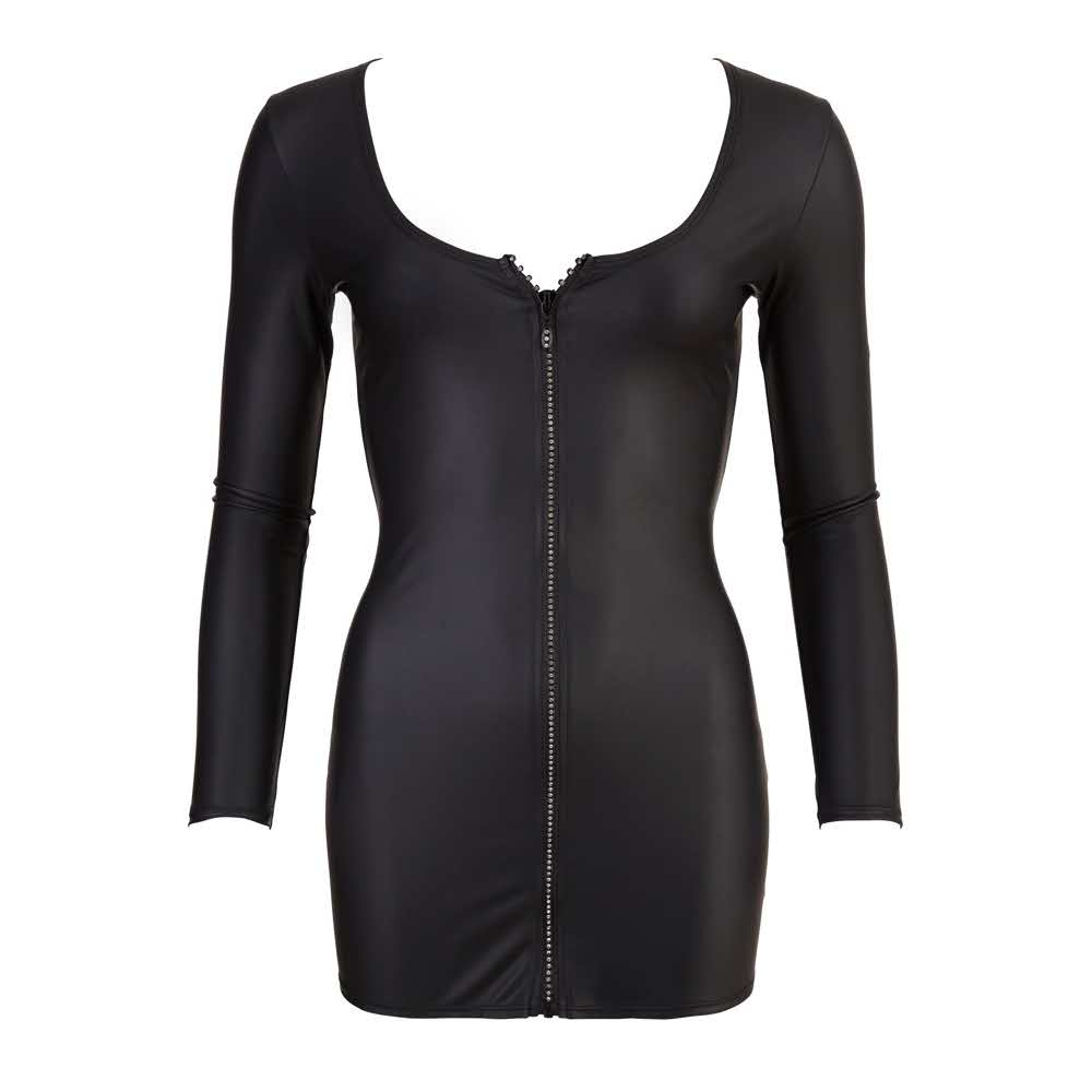 Fajne uwodzenie! Czarna krótka sukienka Cottelli PARTY z długim rękawem zachwyca obcisłym krojem, który podkreśla kobiece krągłości w zgrabny i ekscytujący sposób, jak również dużym dekoltem i błyszczącym brokatowym zamkiem błyskawicznym z przodu. 90% poliester, 10% spandex, powłoka poliuretanowa.