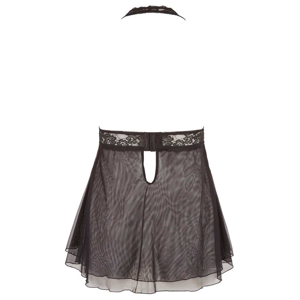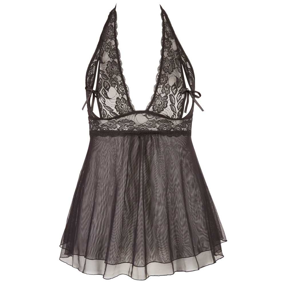 Delikatna koronka z ekscytującą przejrzystością! Ta czarna babydoll z halter szyjką i zapięciem na haczyk z tyłu zdobywa punkty z rozciętymi miseczkami, które atrakcyjnie prezentują piersi i są zamknięte małą kokardką, podczas gdy dwuwarstwowa spódnica z rozklekotanym kształtem sprytnie bawi się wokół bioder. Prawdziwe marzenie o bieliźnie! 100% poliamid koronka 90% poliamid, 10% elastan.