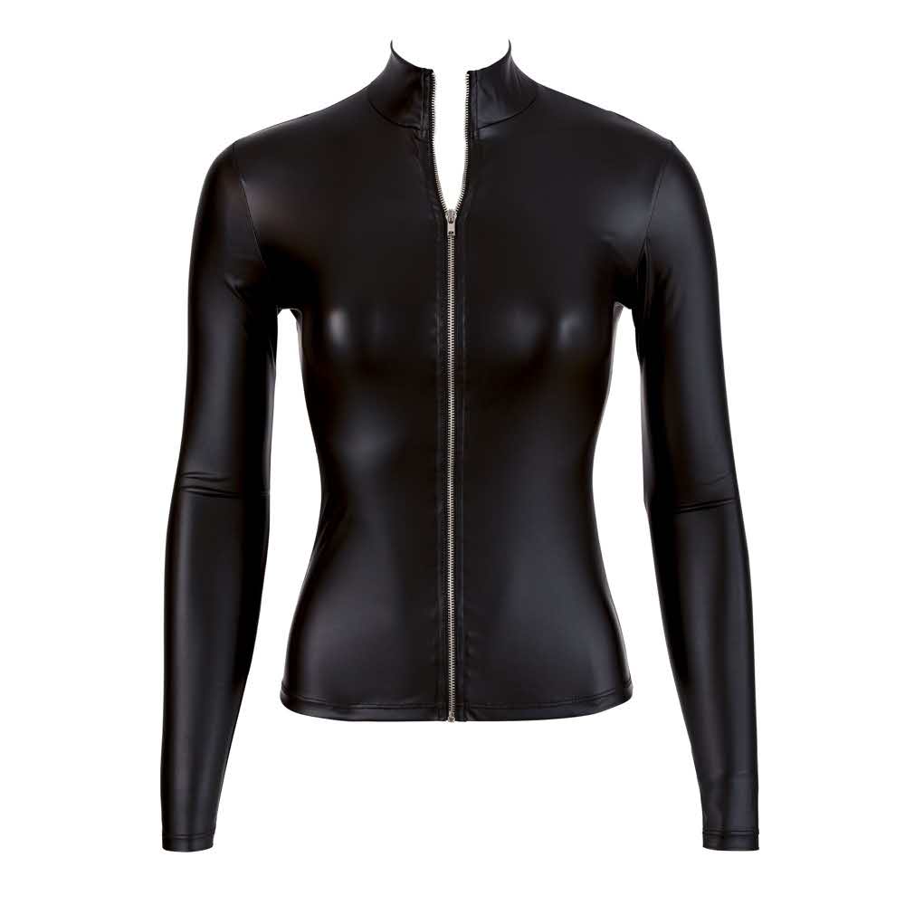Obcisłe i super seksowne! Kto nie lubi gorących krągłości?! Ten czarny top bardzo dobrze podkreśla najlepsze argumenty – bez zdradzania zbyt wiele z góry. Wysoki dekolt z małą stójką i długie ramiona – matowy, błyszczący top, ale dzięki obcisłemu i dopasowanemu krojowi nie jest nudny. 90% poliester, 10% spandex.