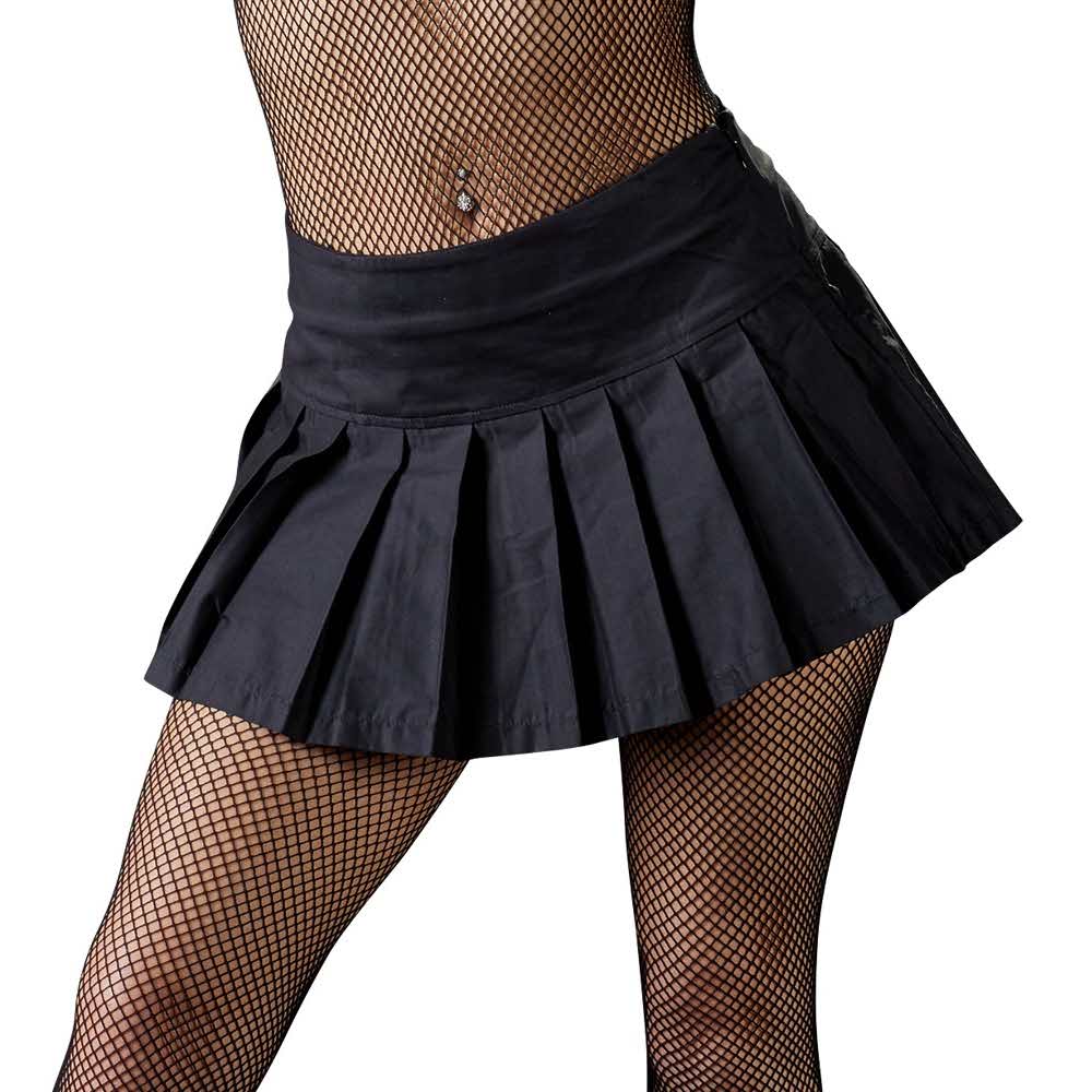 Krótkie, obcisłe i seksowne! Czarna plisowana spódniczka mini z małym suwakiem z boku. 98% bawełna, 2% spandex.