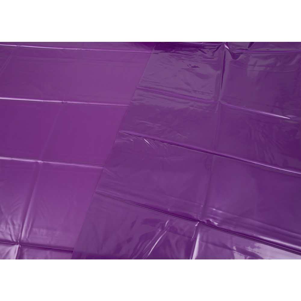 Purple vinyl bed sheet, 200 x 230 cm. 100% polyvinyl chloride.