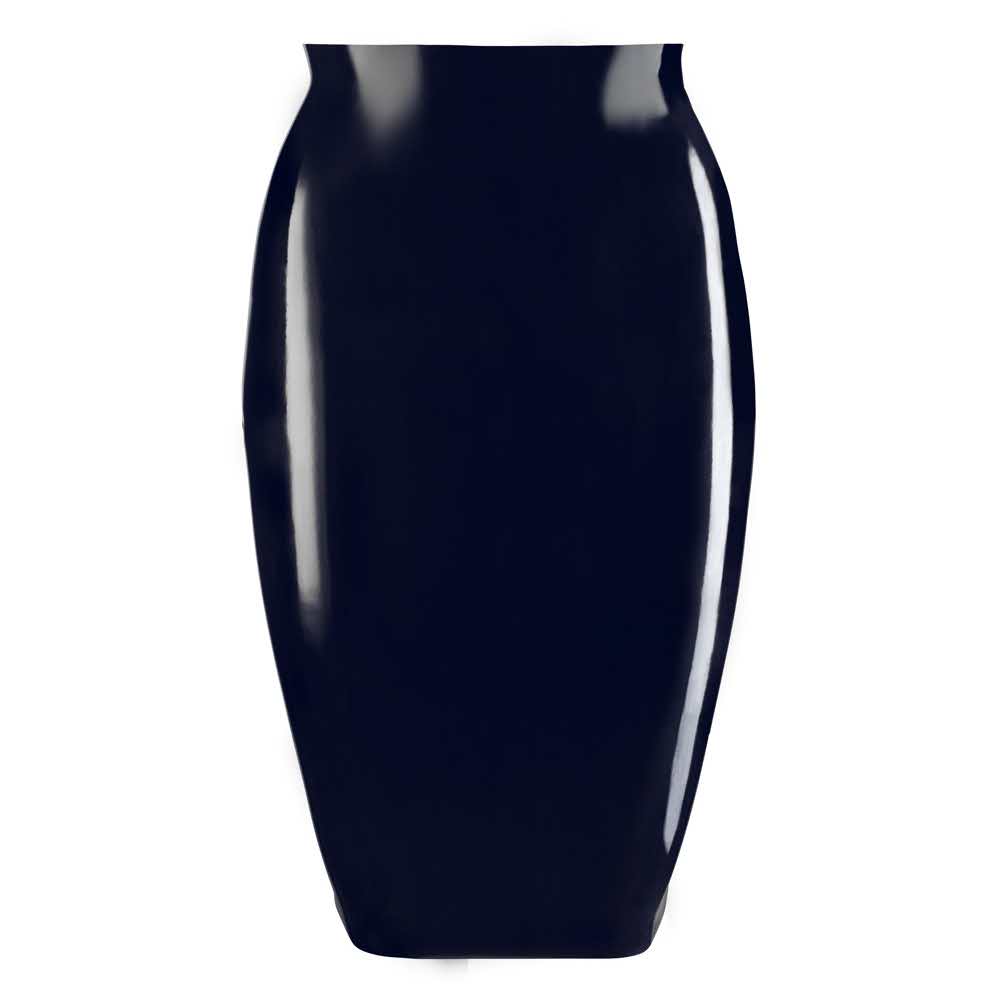 Knee-length and waist-high latex skirt that is narrowly cut. Flat dipped. Black. Thickness 0.35 mm. Latex, made from natural rubber latex which may cause allergies.