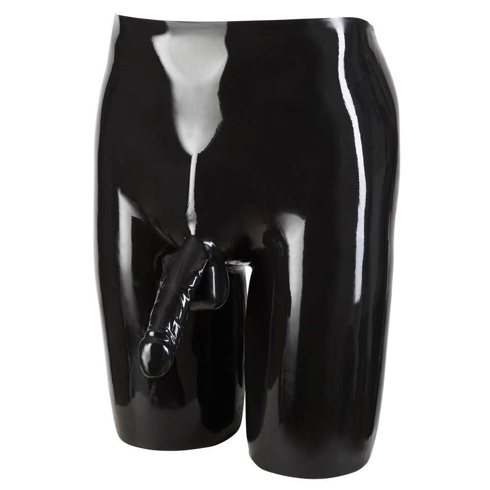 Przyciąga wzrok w męskim stylu! Obcisłe spodenki kolarskie z żyłkowaną osłoną na penisa i jądra. Stworzony dla Twoich najdzikszych fantazji i absolutny klejnot do każdej fetyszowej szafy. Osłonka prącia i jądra: długość 16 cm, średnica 5,5 cm. Lateks (grubość: 0,4 mm, zanurzony na płasko). Wykonane przy użyciu naturalnej gumy, która może powodować alergie.