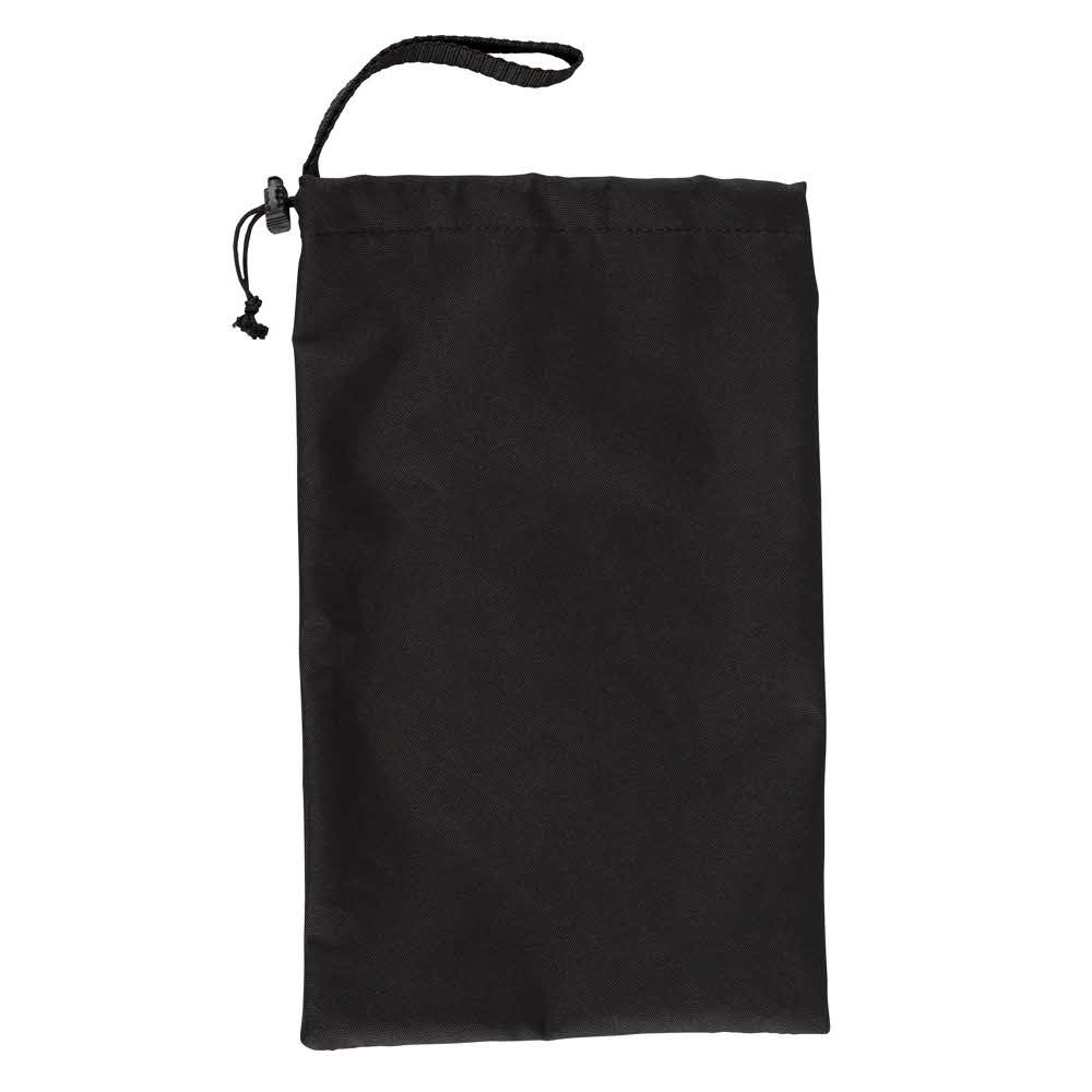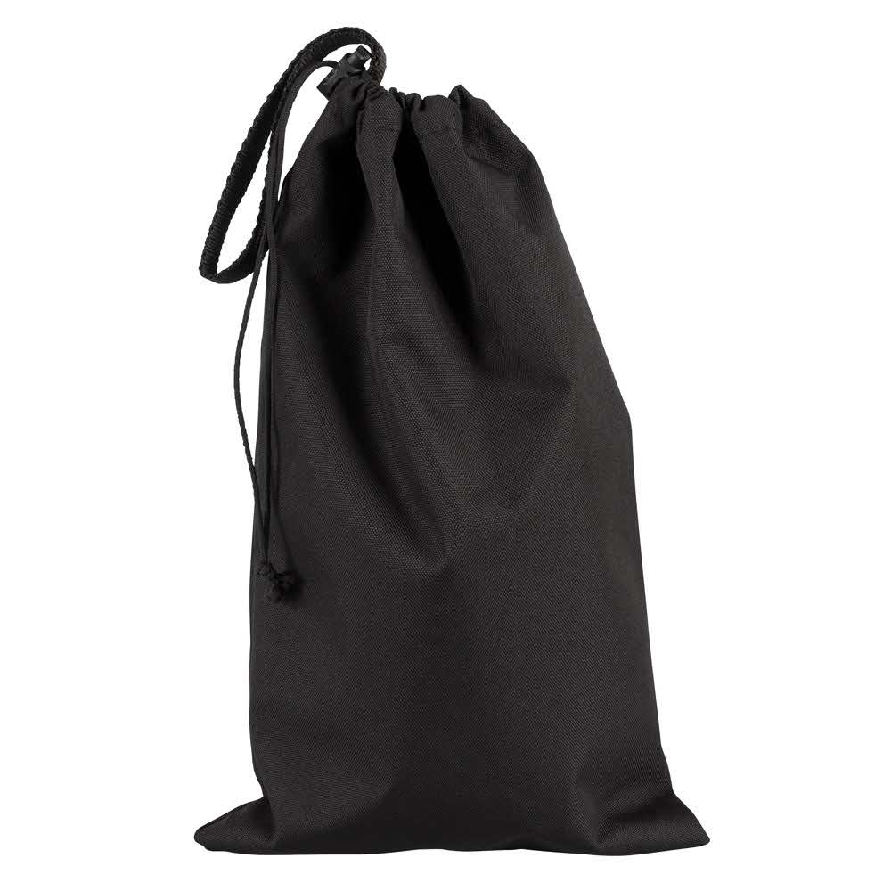 Black storage bag with loop. 24 x 35 cm. Material: polyester.