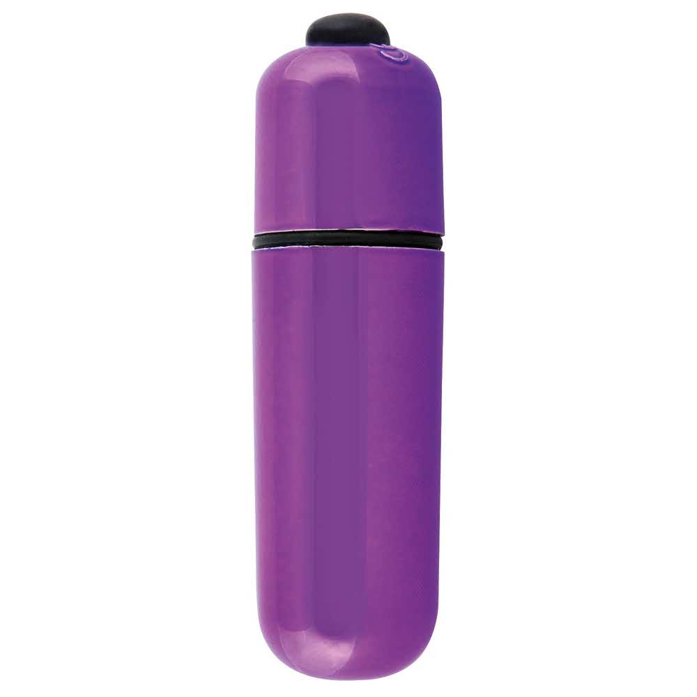 Metaliczno-fioletowy wibrator pocisku w folii nadającej się do zadrukowania. Długość całkowita 7 cm. średnica˜ 1,7 cm. Wibracje regulowane za pomocą jednego przycisku. Materiał: ABS z powłoką metaliczną. W tym baterie z ogniwami guzikowymi.