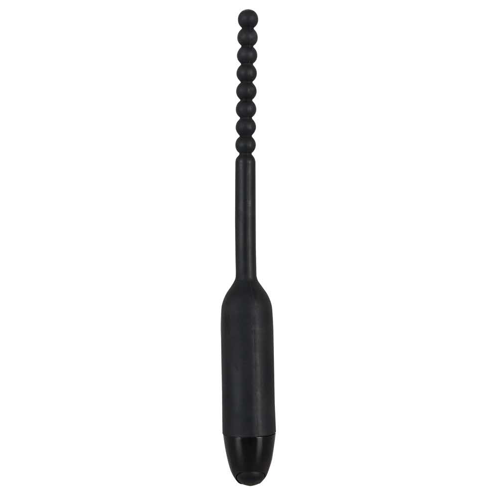 Stymulator cewki moczowej! Czarny wibrator dilator z 7 trybami wibracji za naciśnięciem przycisku. Długość całkowita ok. 19 cm, długość pręta 10,5 cm, średnica˜ ok. 8 mm. Materiał: silikon, ABS. W tym baterie z ogniwami guzikowymi.