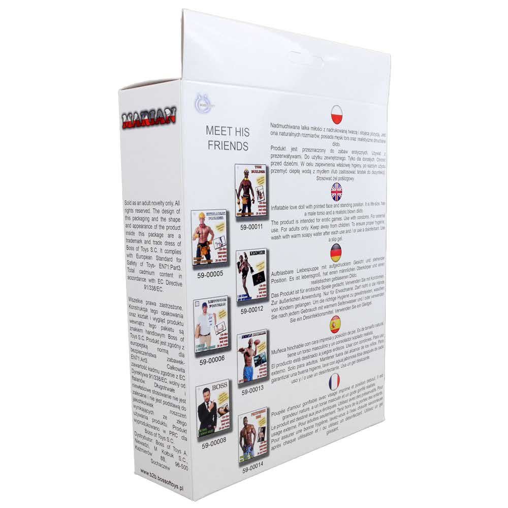 Nadmuchiwana lalka miłości z nadrukowaną twarzą i stojącą pozycją (160 cm). Jest ona naturalnych rozmiarów, posiada męski tors,