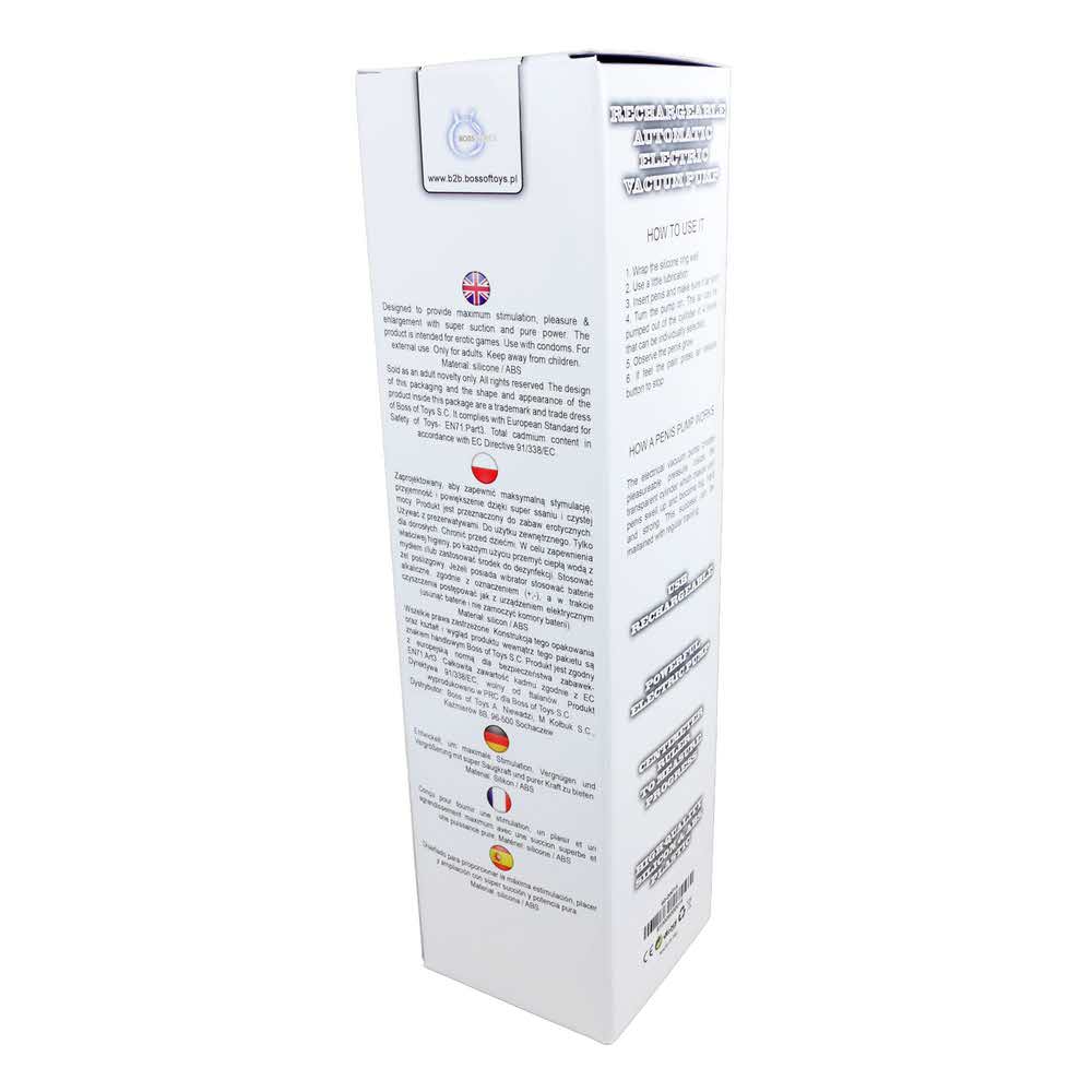 Elektryczna pompa próżniowa przeznaczona dla mężczyzn, którzy szukają nowych możliwości. Regularne stosowanie powoduje wzrost rozmiarów członka i wzmocnienie erekcji. Wysoka jakość materiałów użytych do produkcji pompy sprawi, że zastosowanie produktu będzie przyjemne, bezpieczne i długotrwałe. Urządzenie jest wyposażone w wydajną pompę.