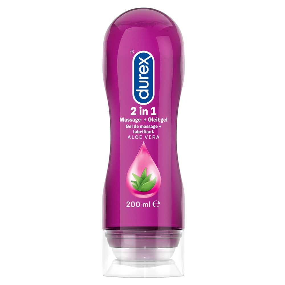 2 w 1: żel do masażu i lubrykantu w połączeniu! Odżywczy, wodny żel 2w1 Durex z kojącym aloesem do stosowania na całe ciało – nie klei się i nie jest tłusty! Zapewnia skórze nawilżenie i sprawia, że staje się ona miękka i elastyczna, co zapewnia doskonałe doznania podczas masażu. Odpowiedni jako lubrykant do seksu waginalnego, analnego i oralnego. Testowany dermatologicznie. Przyjemny, lekko słodki smak. Nie zawiera substancji zapachowych. Bezpieczny dla prezerwatyw lateksowych. 200 ml. Butelka wykonana w 100% z materiałów pochodzących z recyklingu i w 100% nadająca się do ponownego przetworzenia.