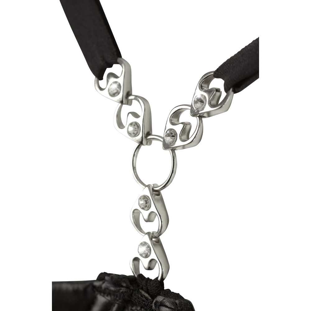Szlachetna optyka z wyrafinowanym spojrzeniem! Zmysłowy korpus sznurkowy z regulowanymi, odpinanymi szelkami i lekko podszyty podnośnik z tyłu zapinany na haczyk. Z wyrafinowanymi detalami pasków i wyszukanym elementem dżetu na dekolcie. Półprzezroczysta koronkowa wkładka z przodu oferuje lazurowe spojrzenie. Na górze znajdują się dodatkowe wyszukane sznurowadła ze srebrnymi pierścieniami i elastycznymi gumkami. Krocze jest całkowicie otwarte. Podobnie jak w dekolcie, są tu ekscytujące detale pasków i kolejny element z dżetu. 90% poliester, 10% elastan koronka: 90% poliamid, 10% elastan.