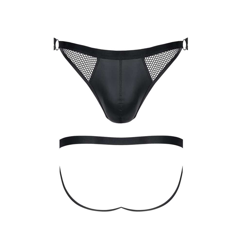 męskie figi z wetlooka z otwartym tyłem i elementem dekoracyjnym z boku M