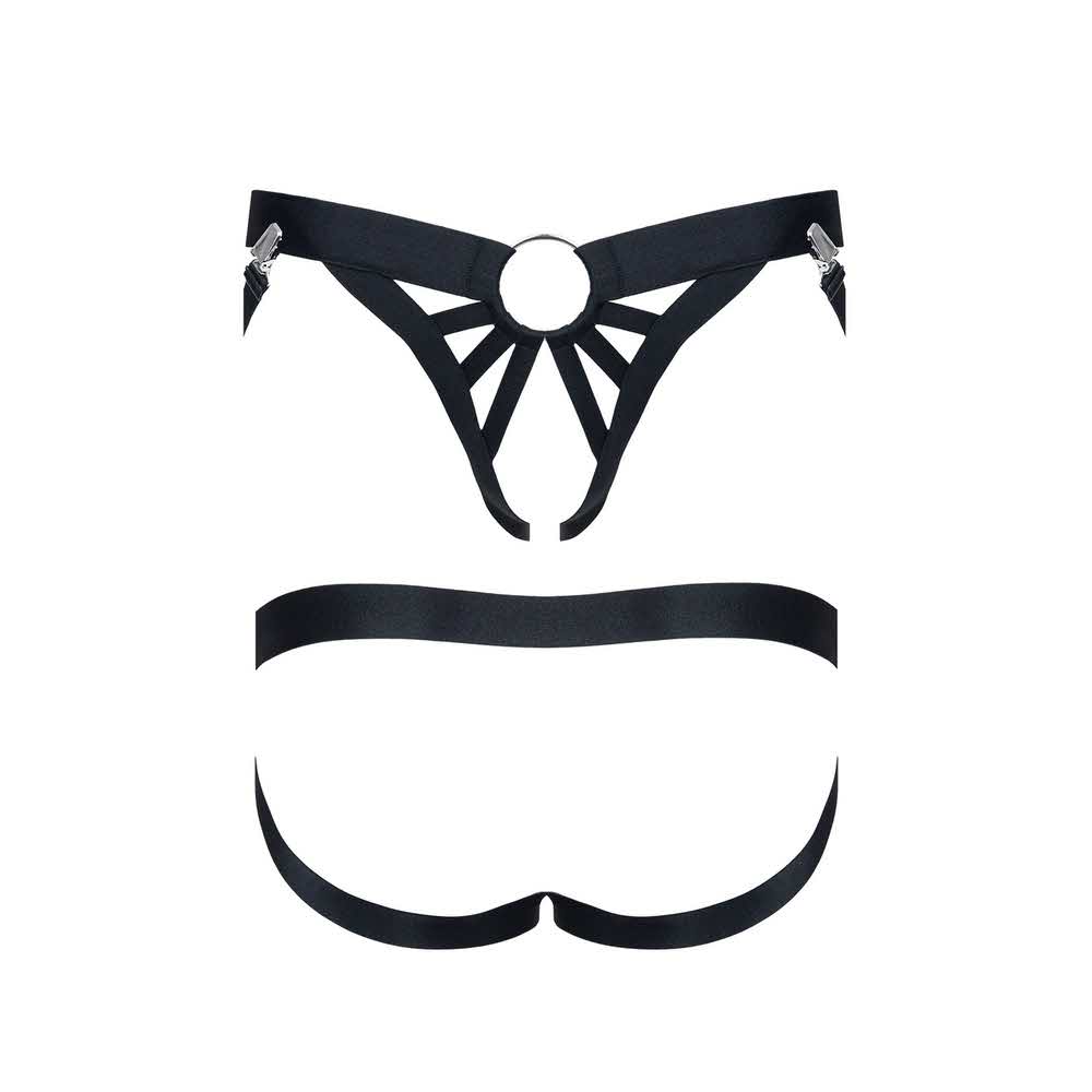 męskie figi z gumy z otwartym tyłem elementem dekoracyjnym z przodu i zapięciami L XL