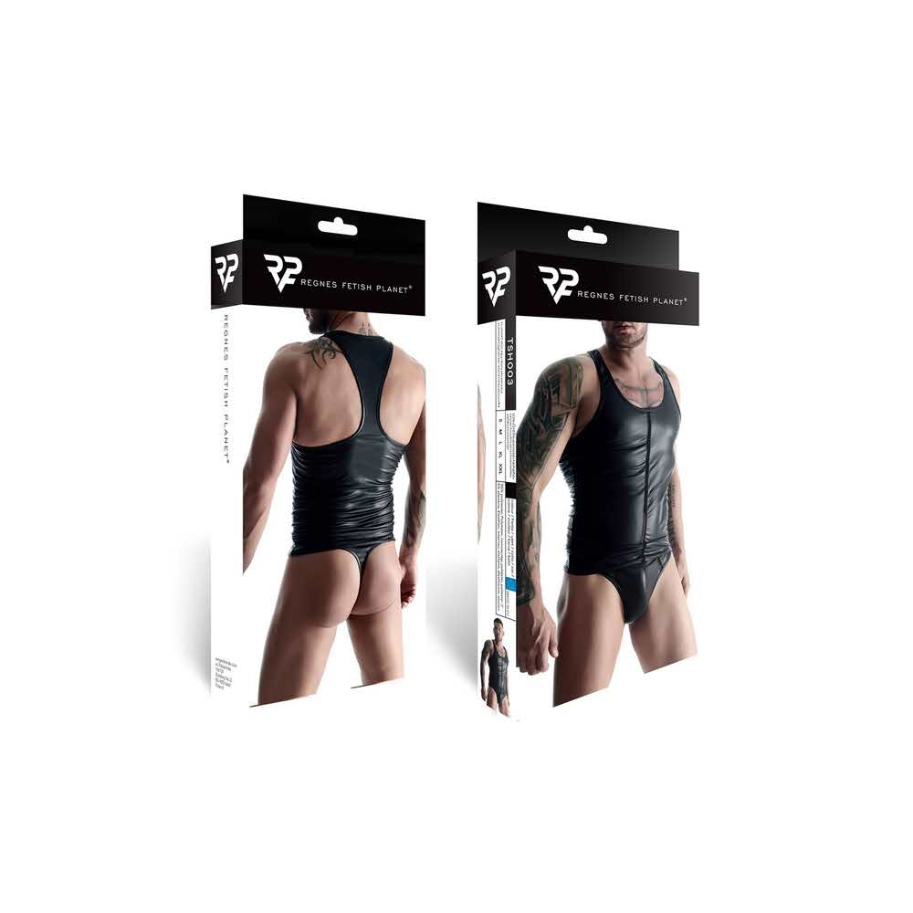 RFP regnes fetish planet to pasja, kreatywność, oryginalność… To otwarcie na nowe doznania i bagaż zaskakujących i zapadających w pamięć momentów. Marka kieruje swoje produkty do osób ceniących sobie modę, seksowną bieliznę, odzież clubwear, a także mających jasno określone upodobania fetish. Mężczyzn kreatywnych, ciekawych, lubiących eksperymentować, świadomych swoich potrzeb. Poszukujących nowych doznań, inspiracji. Oczekujących wysokiej jakości produktu. Wygodnego, trwałego i wyróżniającego się niecodziennym wzornictwem. Produkty oznaczone logo RFP regnes fetish planet pięknie wyglądają, są wygodne i trwałe. Podnoszą one temperaturę zabaw, a jednocześnie pozwalają na inspirujące eksperymenty. Majtki z rozwiązaniem BigBossEFFECT, koszulki z dostępem do piersi, zestawy „soft bondage” z gumek, majtki z otwartym tyłem, otwarte kieszonki w szortach… Te i inne rozwiązania zostaną docenione i z pewnością zagwarantują miłe doznania. Opis produktu: koszulka bez ramiączek / elastyczny i miły w dotyku materiał / z przodu ozdobna, pionowa elastyczna taśma z krateczką / wzmacniające przeszycia; 95% polyester / 5% elastane