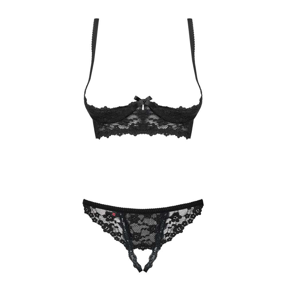– zestaw zawiera: biustonosz z otwartymi miseczkami i stringi z otwartym krokiem