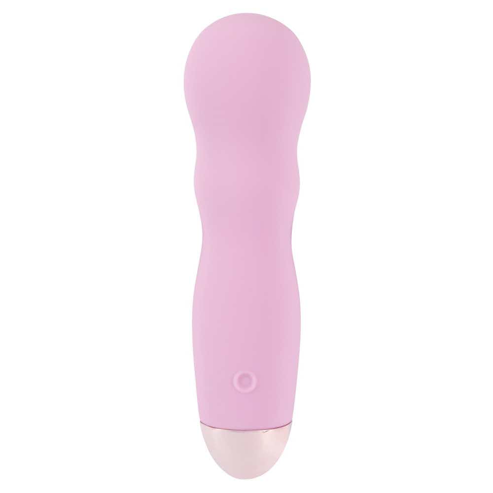 Różowy mini wibrator z dwoma wklęsłymi wypustkami na trzonie. Posiada 7 różnych trybów wibracji i może być ładowany za pomocą dołączonego kabla USB do ładowania. Ĺatwy w użyciu i elegancki design. Wodoodporny. Długość całkowita 12,4 cm, średnica 2,3-3,3 cm, waga 69 gr. Silikon, ABS, powłoka PU.