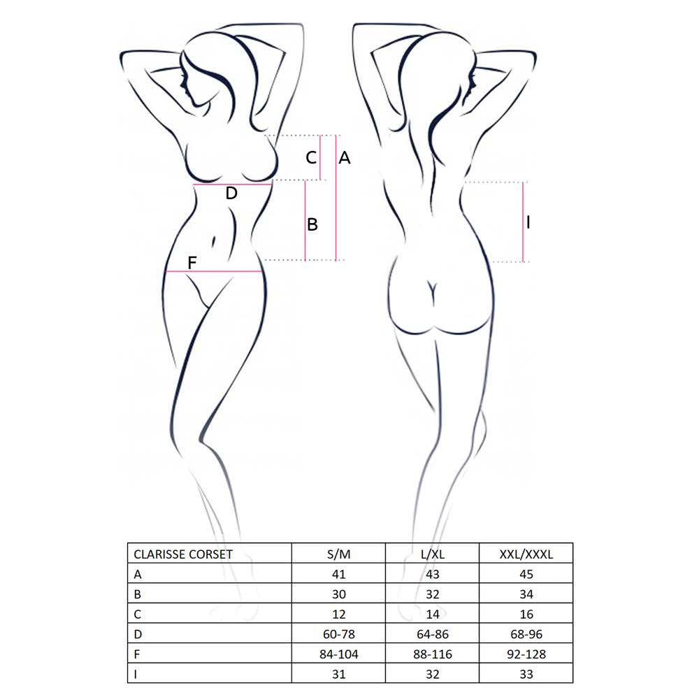 Gorset dostępny w dwóch wersjach kolorystycznych – beżu i czerni – wykonany z delikatnej, elastycznej satyny, tiulu oraz eleganckiej koronki, która ukazuje kształtne atuty każdej kobiety. Dołączone do gorsetu stringi idealnie dopełniają całość bielizny jednocześnie podkreślając jej nietypowy, wyjątkowo seksowny charakter.