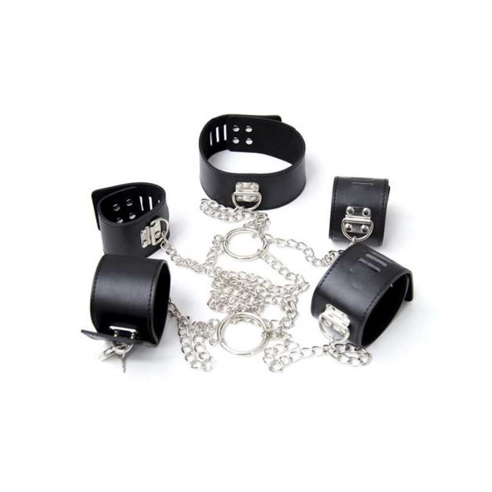 Ściągacz wykonany z imitacji skóry i łańcuszków, składający się z kołnierza, opasek na rękę i kostek, które mogą blokować całe ciało. Obiekt ograniczenia bdsm, który pozwoli Ci zrealizować fantazje o dominacji, nawet te najbardziej nieuznane. Dzięki Fetish Art nie masz budżetu, który możesz zachować, możesz zaspokoić swoje najskrytsze pragnienia.