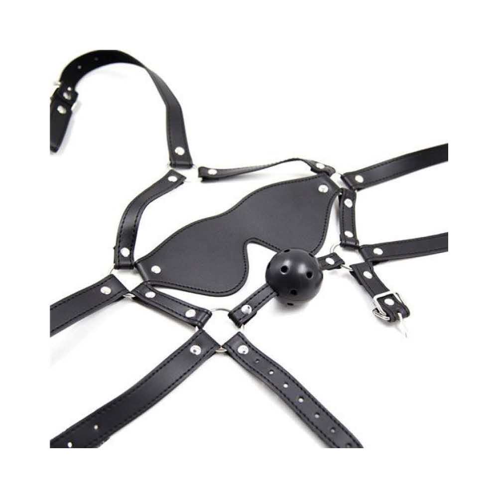 Jest to uprząż do twarzy z maską na oczy i ugryzieniem piłki dedykowana tym, którzy chcą doświadczyć silnych emocji wykonanych z ekoskóry, bardzo ekscytujące. Zamkniesz swojego zwierzaka w masce za pomocą kneblu do ust! Bandażuj swoich nieposłusznych specjalnymi uwagami, na które pozwala Ci tylko Fetysz, przeczytasz ich impotencję w ich oczach i poczujesz niekwestionowanych władców.