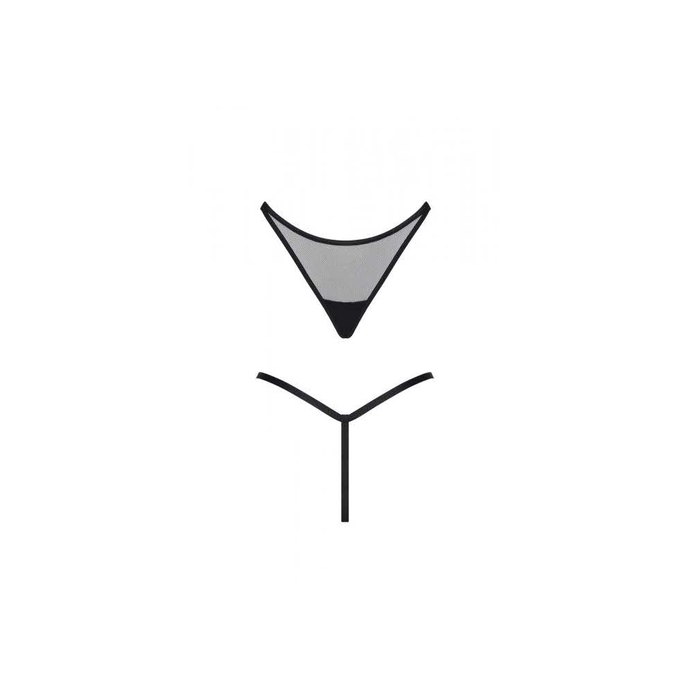 Stringi z czarnej, elastycznej siateczki. Miłe w dotyku i wygodne. Czarne gumki przyjemne w dotyku i wytrzymałe.