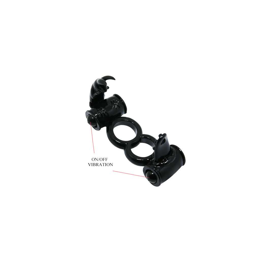 Podwójny pierścień wibracyjny zwiększa przyjemność zmysłową obojga partnerów, dzięki czemu seks jest jaśniejszy i dłuższy. Pierścień erekcyjny zakłada się na wyprostowanego penisa bez użycia smarów. Pierścień erekcyjny jest wyposażony w dwa wibro-pociski, które zwiększają przyjemność mężczyzny i pomagają stymulować łechtaczkę i wejście do pochwy partnera. Pierścień sprawi, że erekcja będzie dłuższa, a penis smuklejszy i mocniejszy. Charakterystyka: kolor – czarny, materiał – silikon, długość – 15 cm, szerokość – 4,5 cm, średnica otworu – 2,5 cm Opakowanie: karton z nadrukiem.
